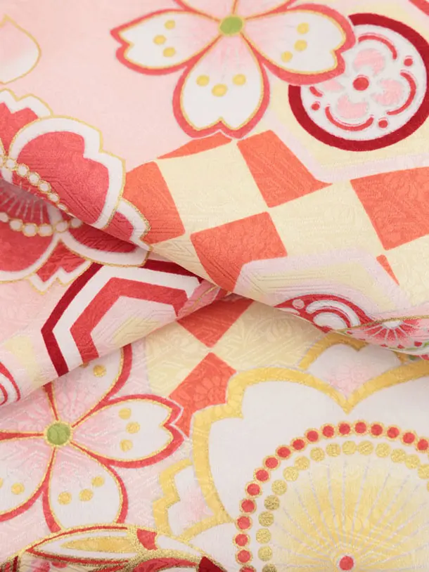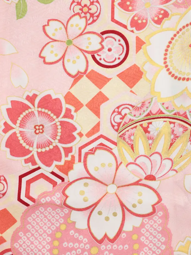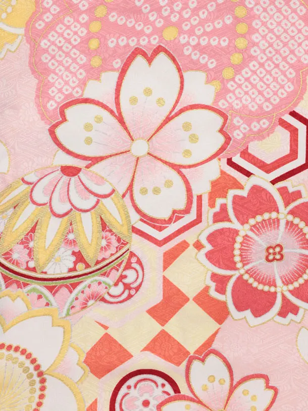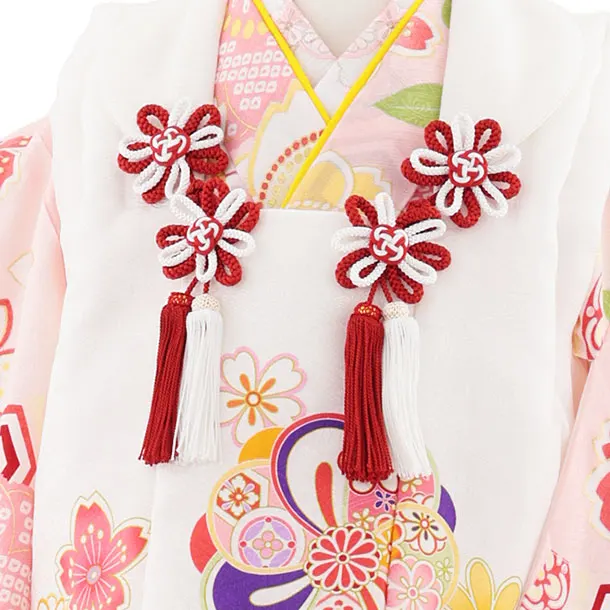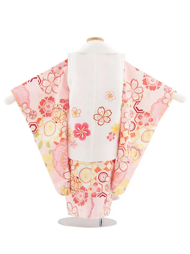 七五三レンタル(3歳女児被布)S018【正絹】白地ねじり梅×ピンク桜鞠