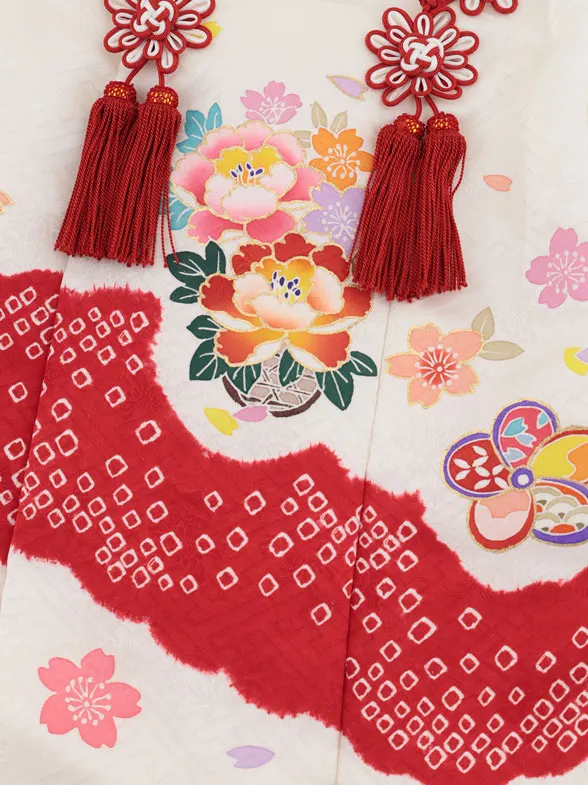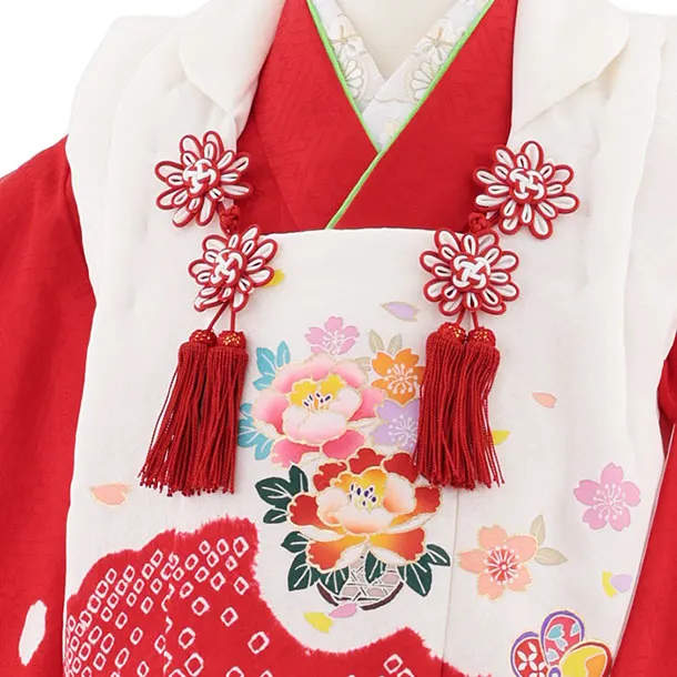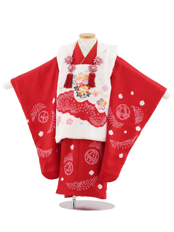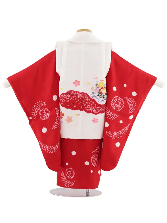七五三レンタル(3歳女児被布)S027【正絹】白地花籠×赤地鞠