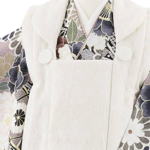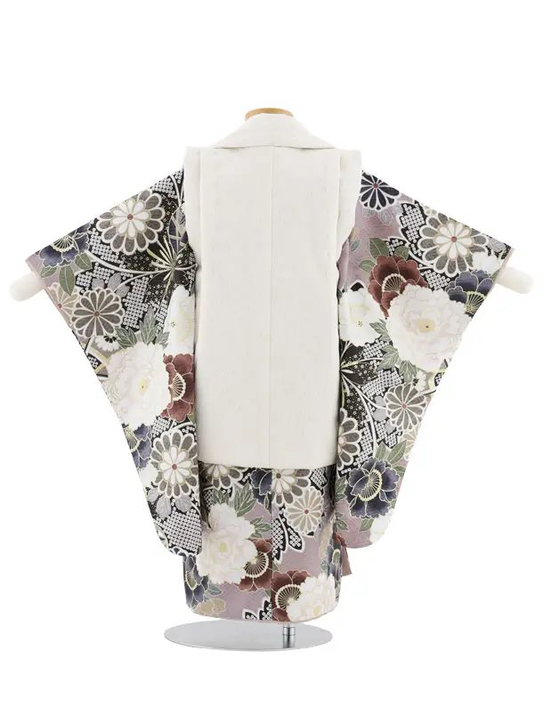 七五三レンタル(3歳女児被布)S037 オフホワイト×パープル古典柄