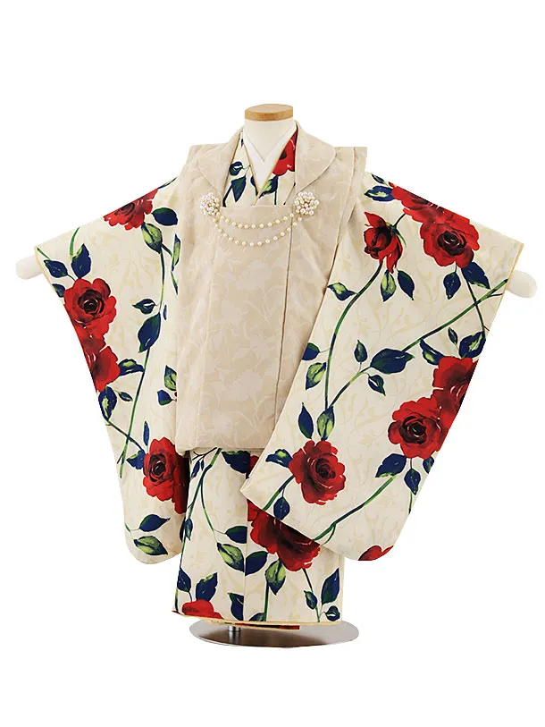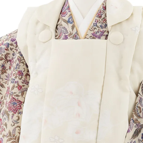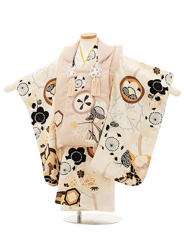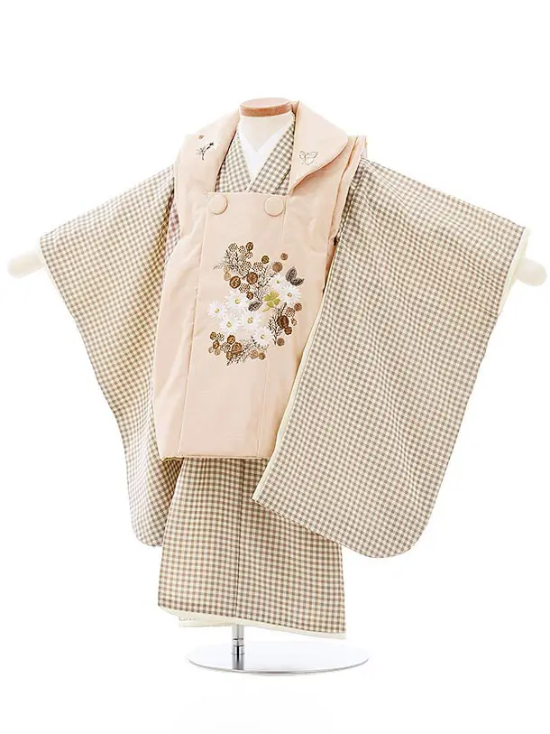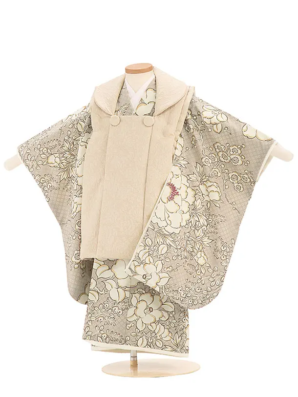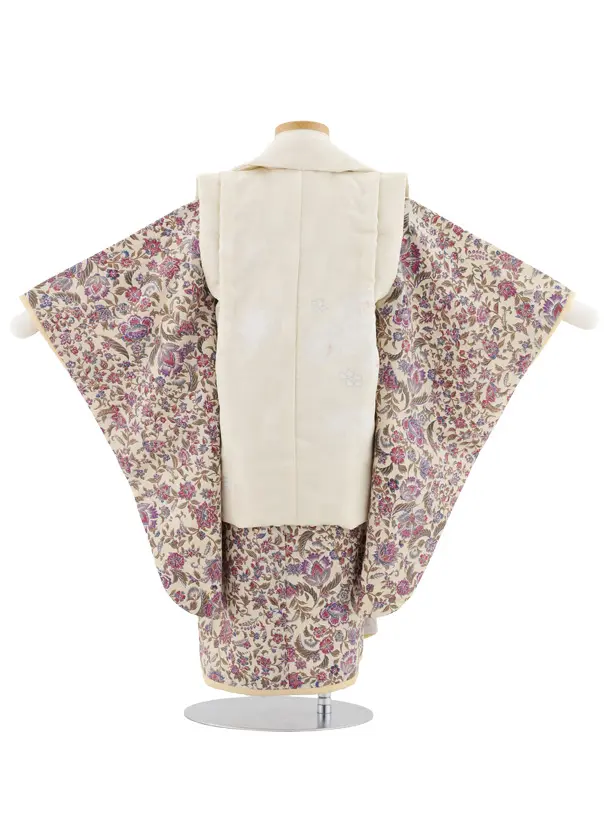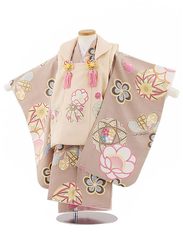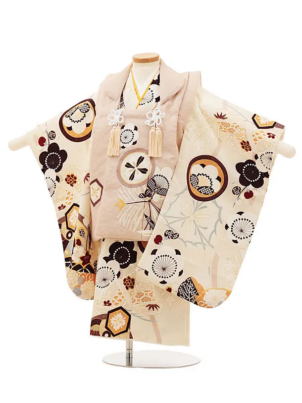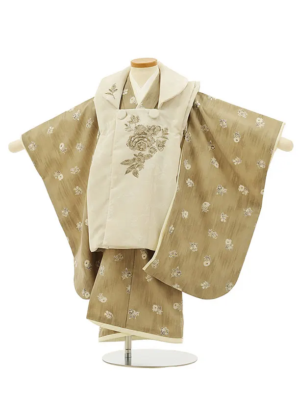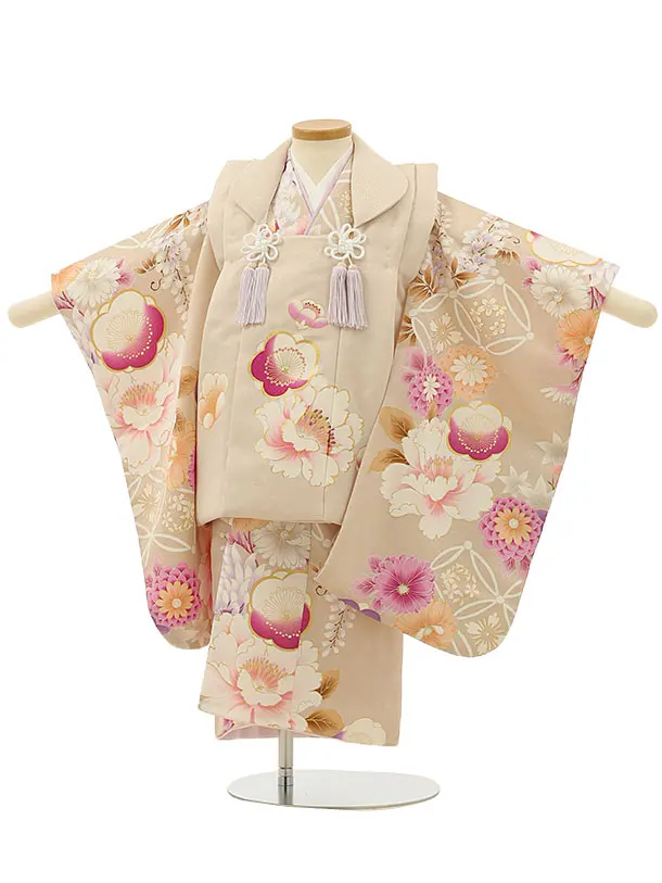 七五三レンタル(3歳女児被布)S038 ベージュ×更紗模様