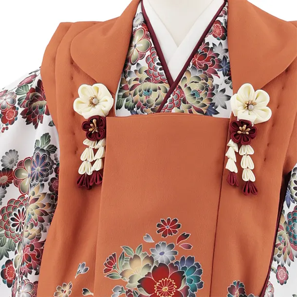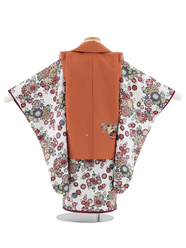 七五三レンタル(3歳女児被布)S053 オレンジ×白地小花
