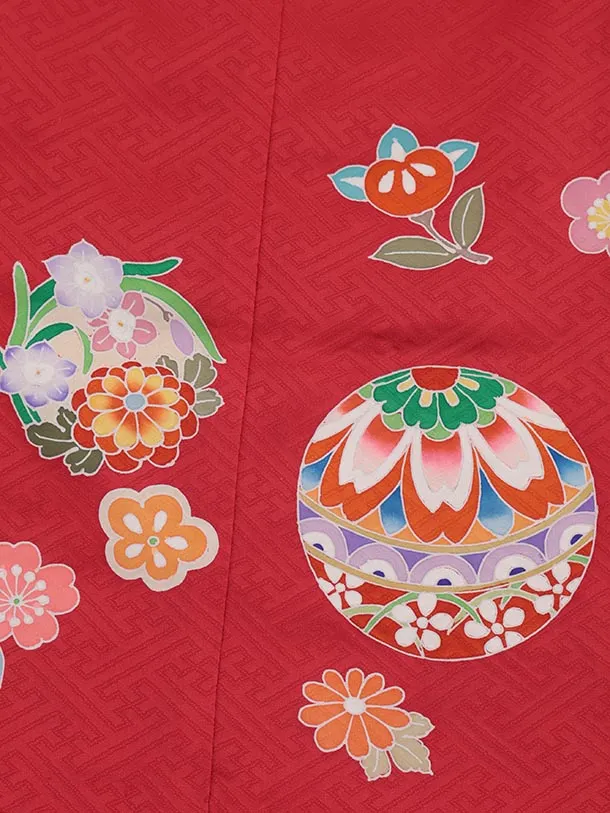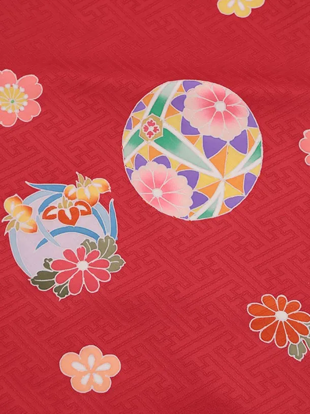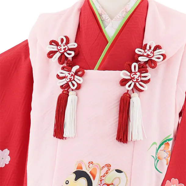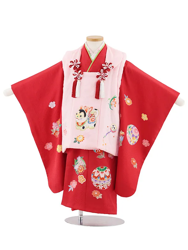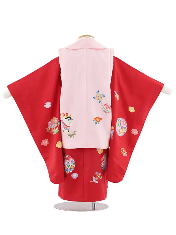 七五三レンタル(3歳女児被布)S057【正絹】ピンク 犬張り子×赤 鞠花