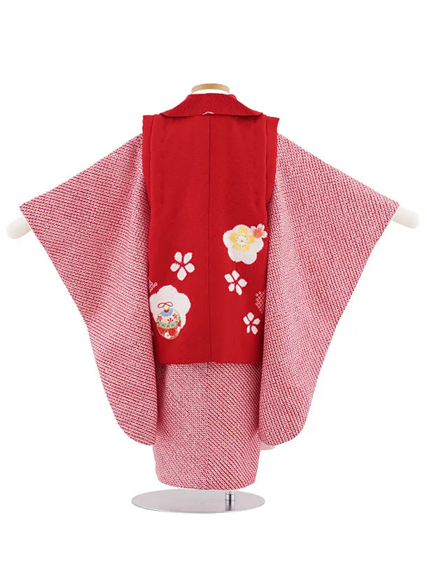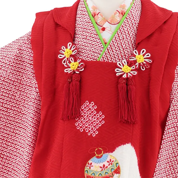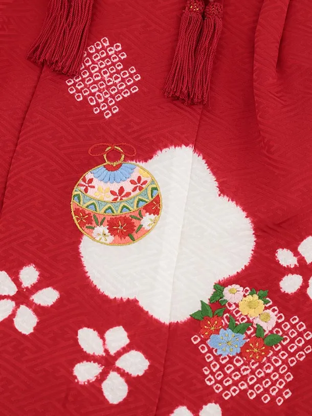 七五三レンタル(3歳女児被布)S059【正絹】赤地刺繍鞠×赤絞り