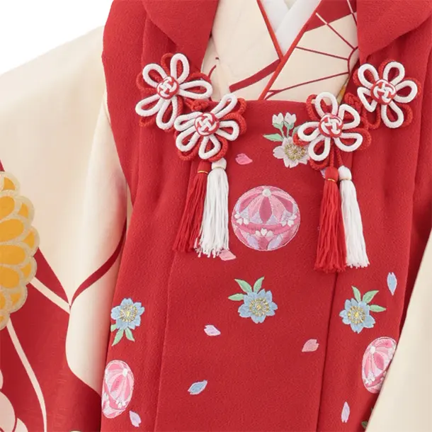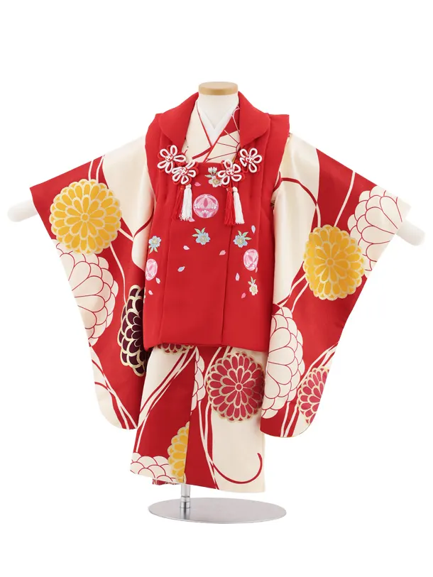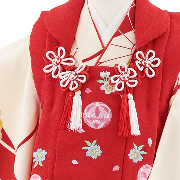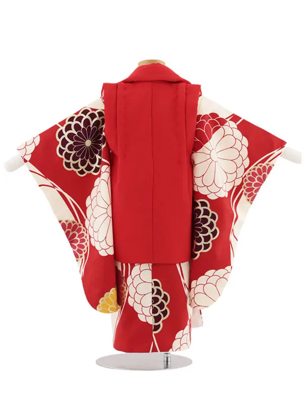 七五三レンタル(3歳女児被布)S071 赤地 刺繍 鞠桜×赤クリーム菊