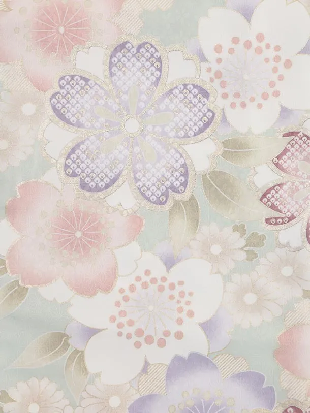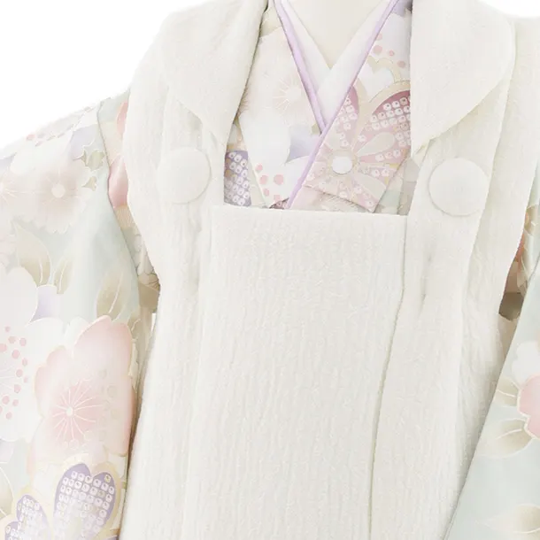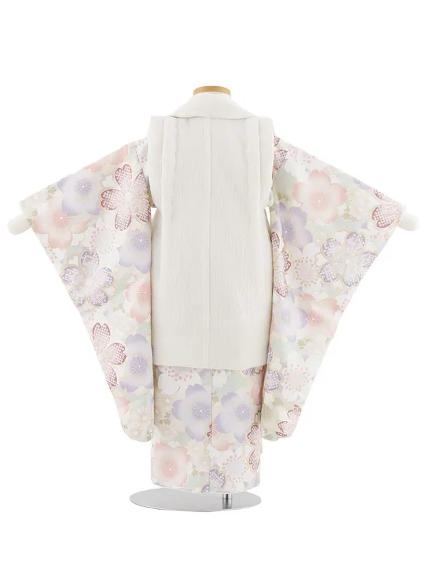 七五三レンタル(3歳女児被布)S081 オフホワイト×ペールグリーン シルバー桜