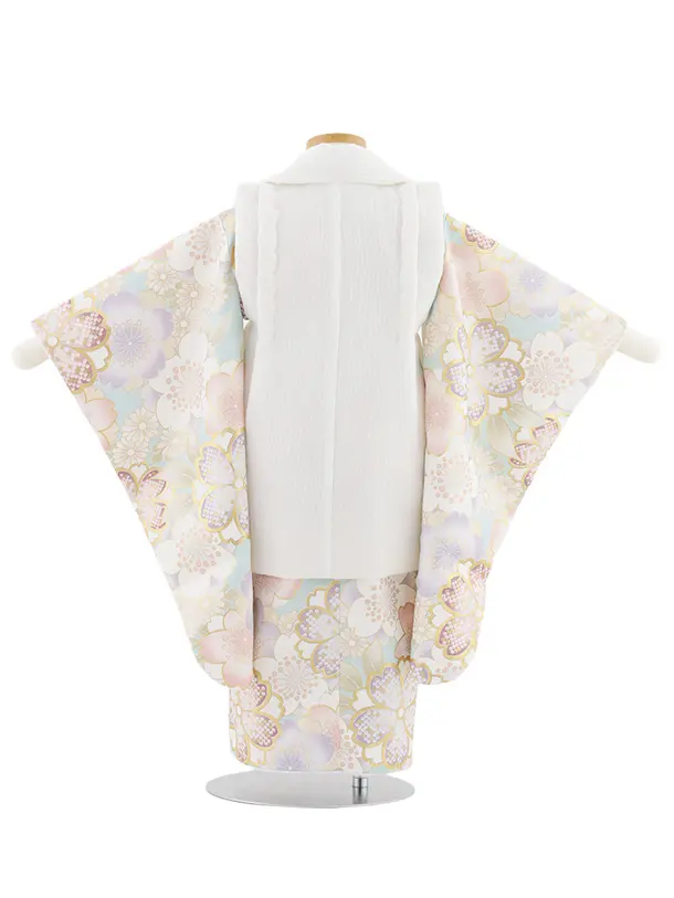 七五三レンタル(3歳女児被布)S082 オフホワイト×ペールブルー ゴールド桜