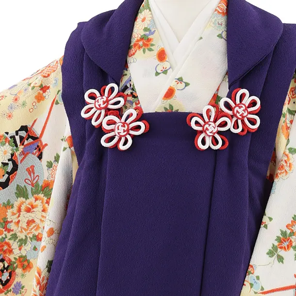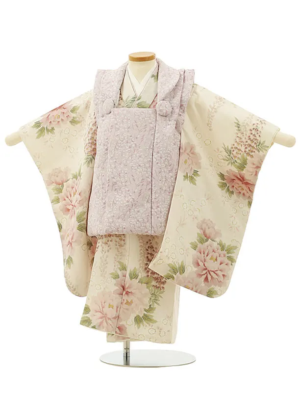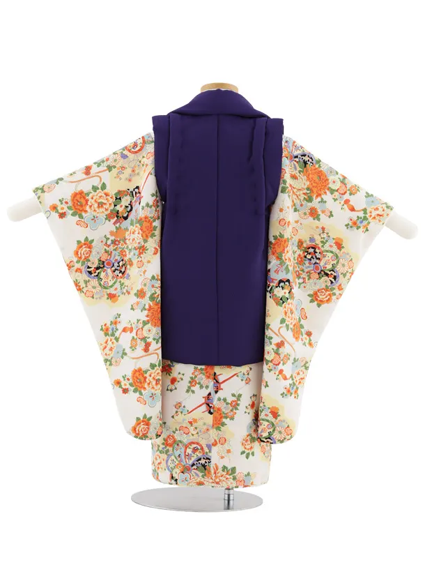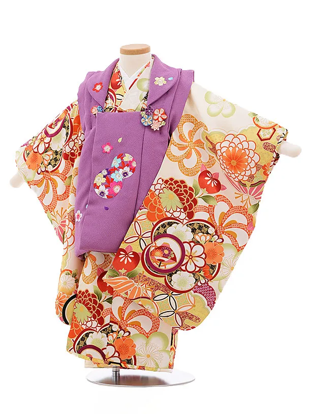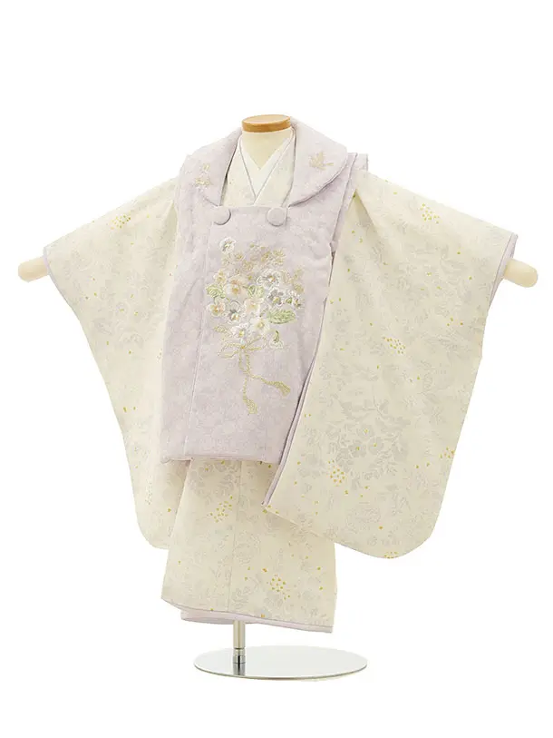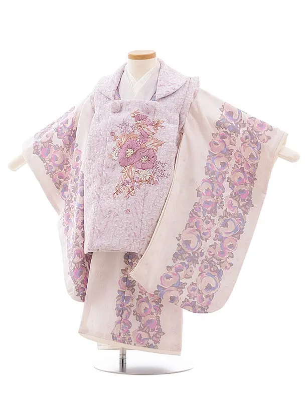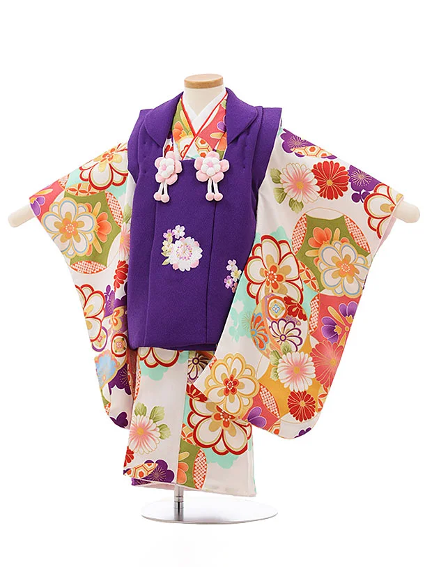 七五三レンタル(3歳女児被布)S095 紫×白地 ちりめん花車に菊