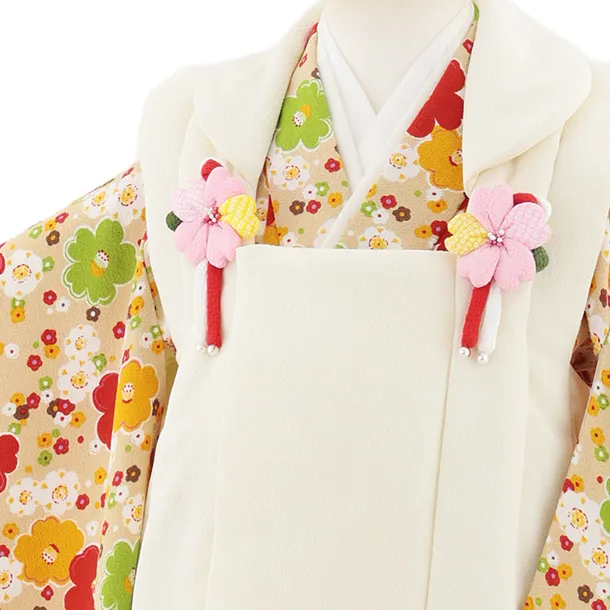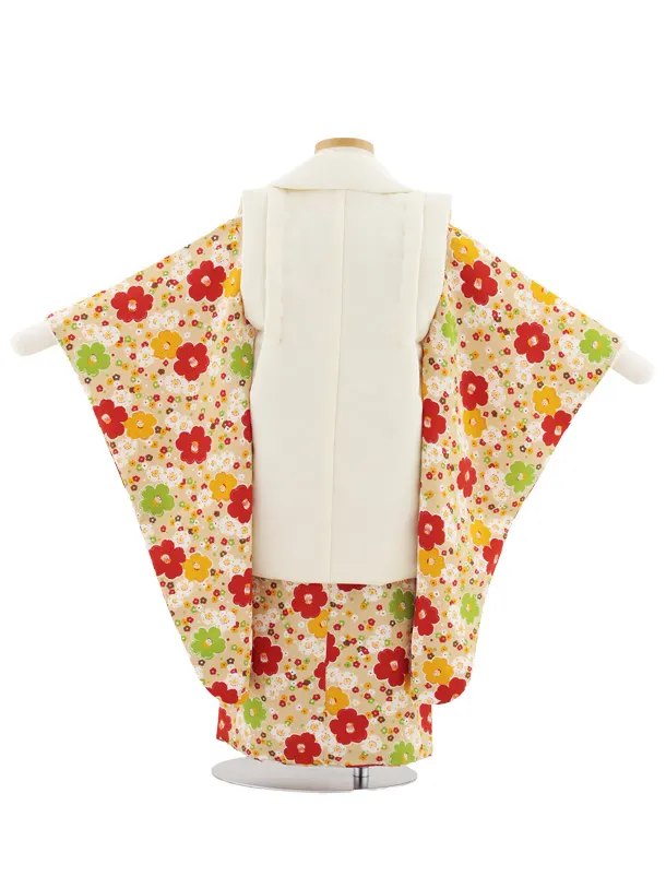 七五三レンタル(3歳女児被布)S098 オフホワイト×ベージュ ちりめん椿梅