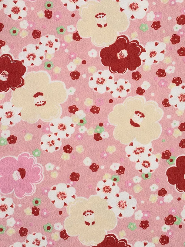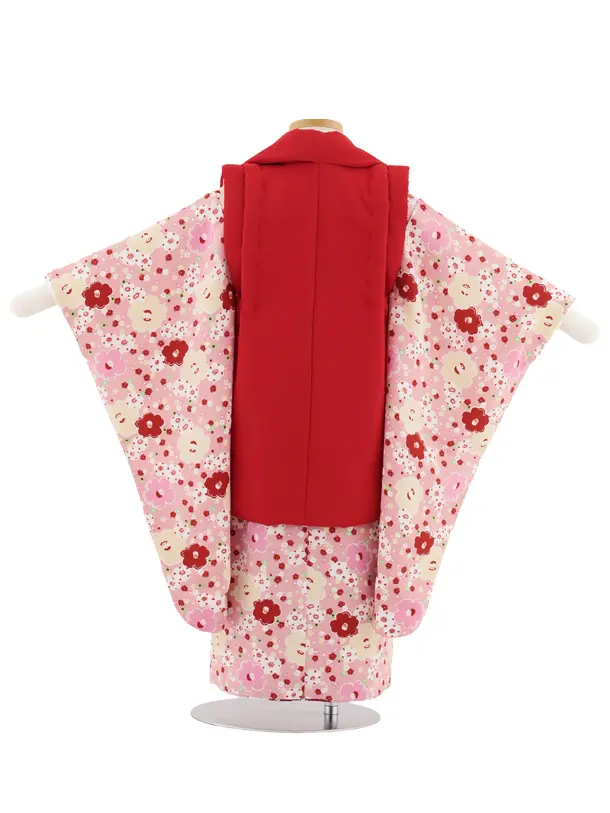 七五三レンタル(3歳女児被布)S099 赤地×ピンク ちりめん椿梅