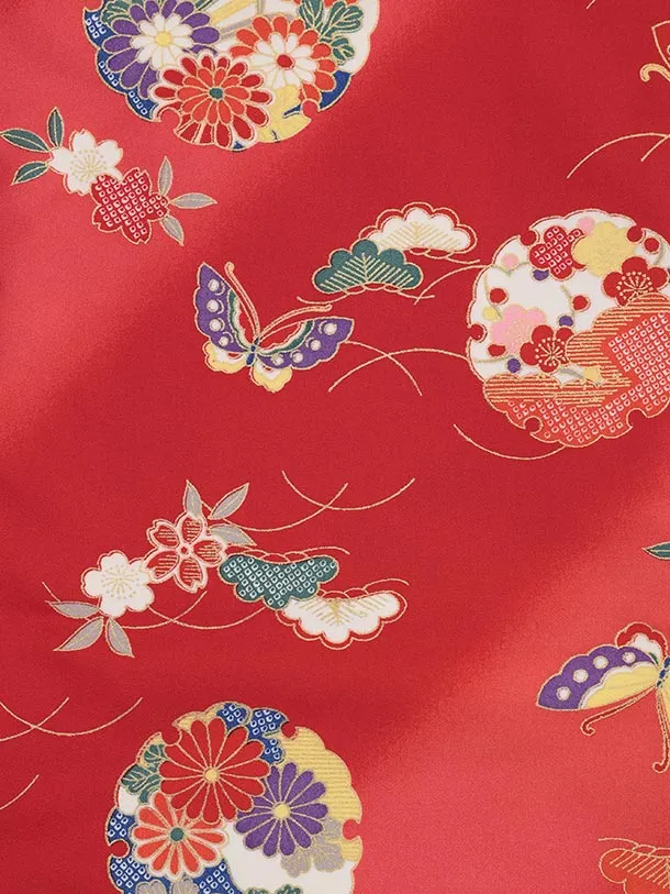七五三レンタル(3歳女児被布)S102 赤地 古典柄
