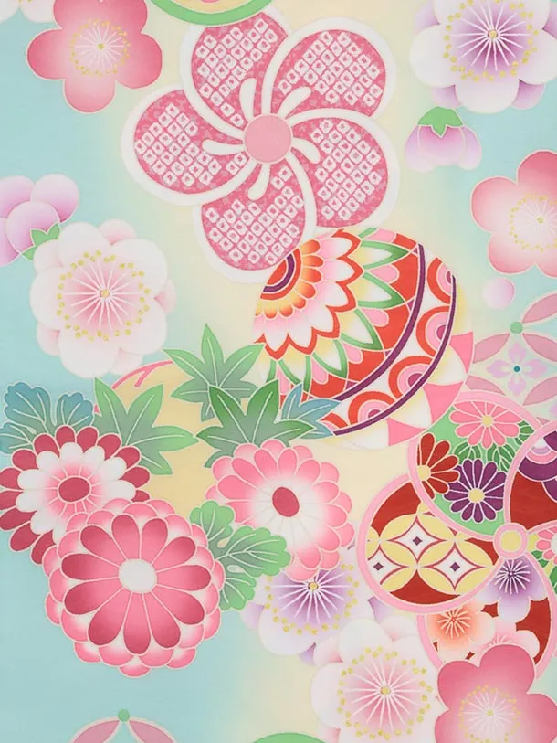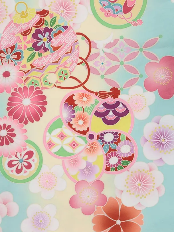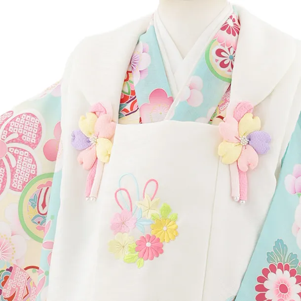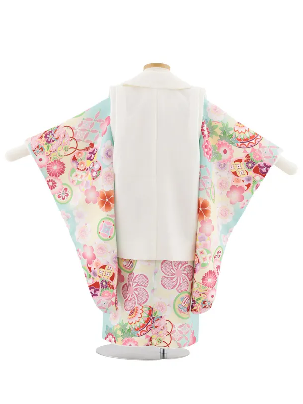 七五三(3歳女児被布)S107 式部浪漫 アイボリー刺繍花×ミントグリーン鞠梅