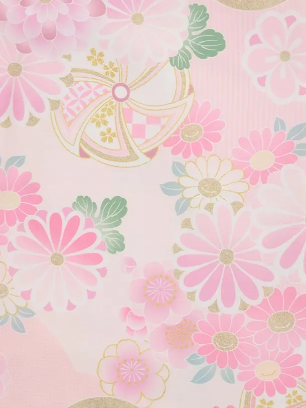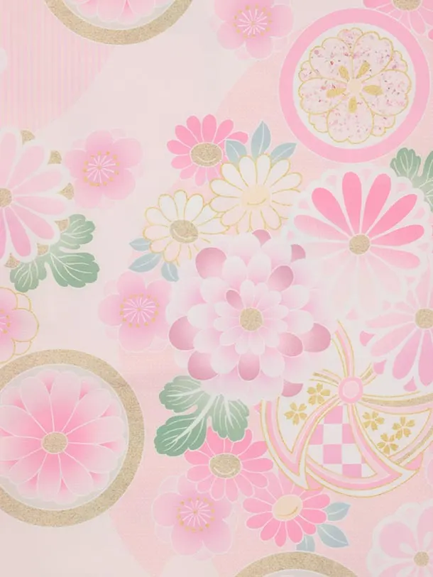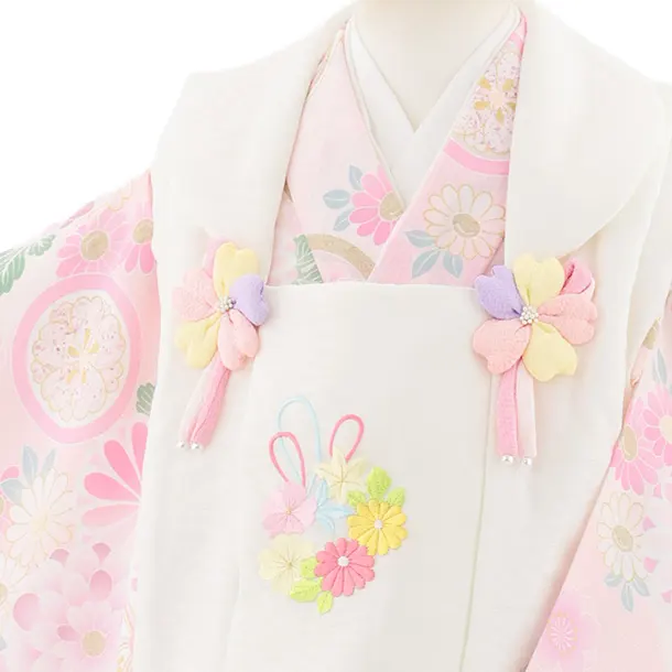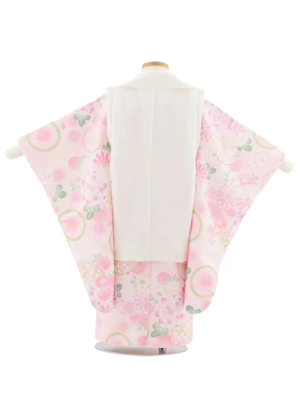 七五三レンタル(3歳女児被布)S108 式部浪漫 アイボリー刺繍花×ピンク丸紋花