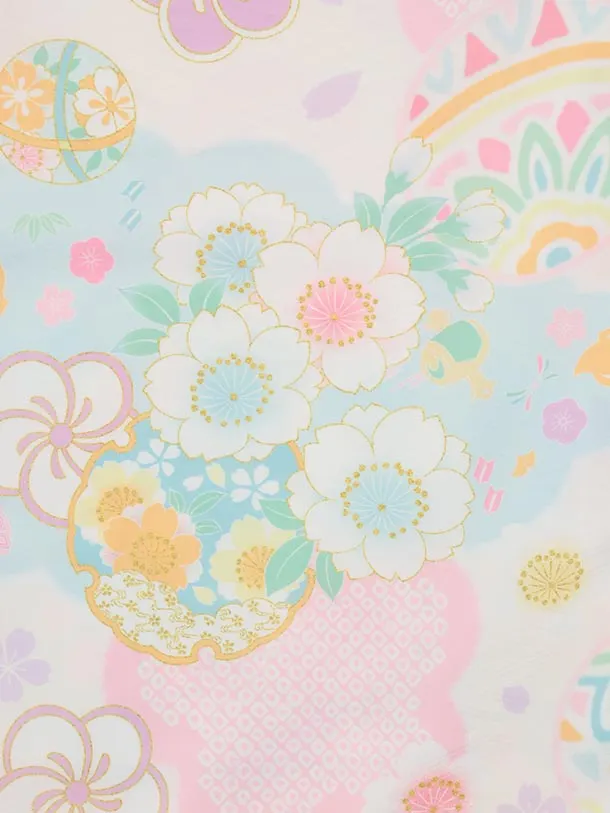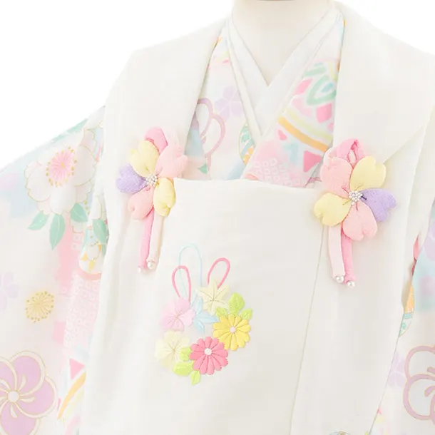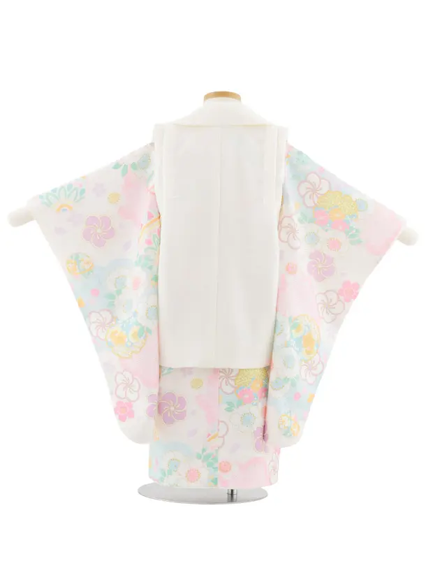 七五三レンタル(3歳女児被布)S110 式部浪漫 アイボリー刺繍花×鞠と花