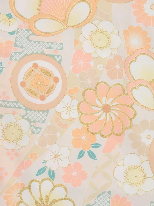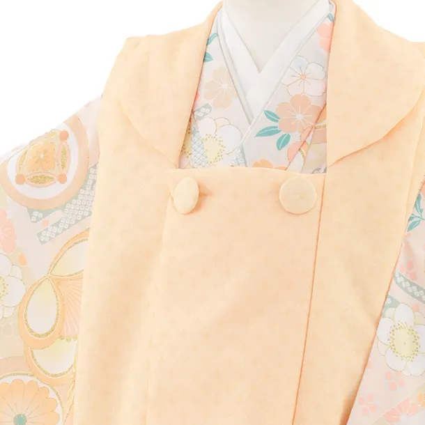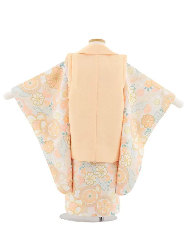 七五三(3歳女児被布)S114 式部浪漫 薄オレンジ×薄ベージュ 花と丸紋