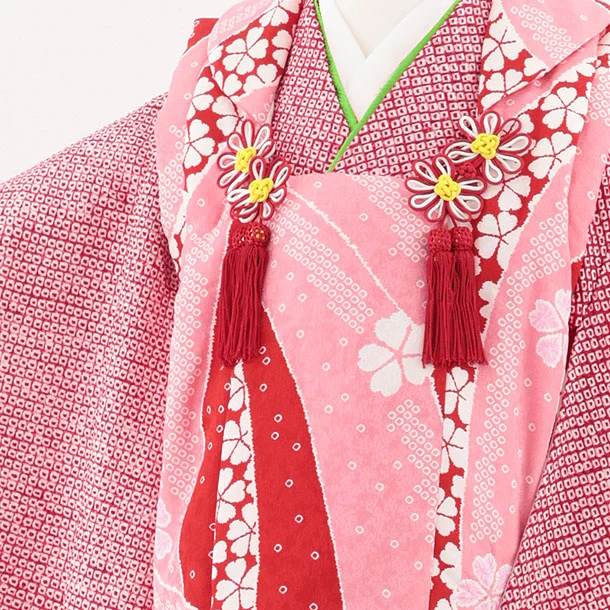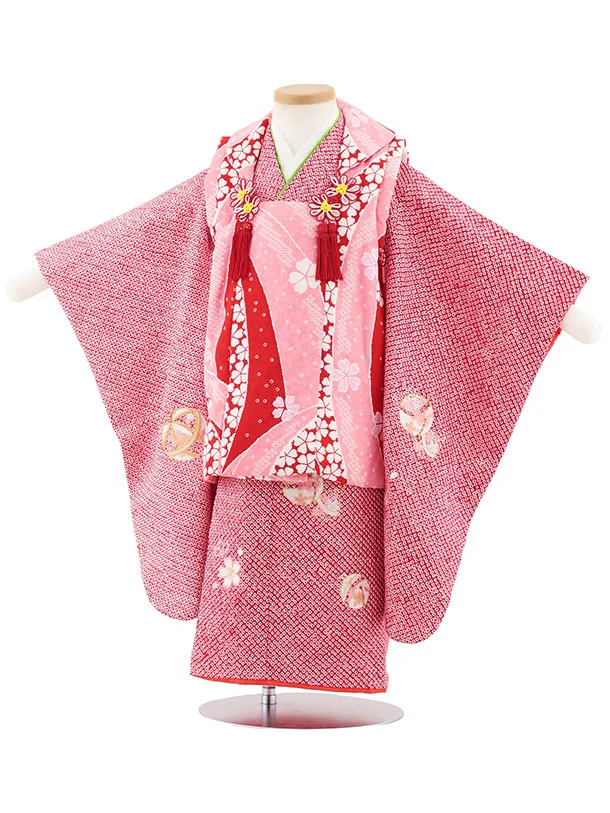 七五三レンタル(3歳女児被布)S116【正絹】ピンク×赤絞り刺繍鈴