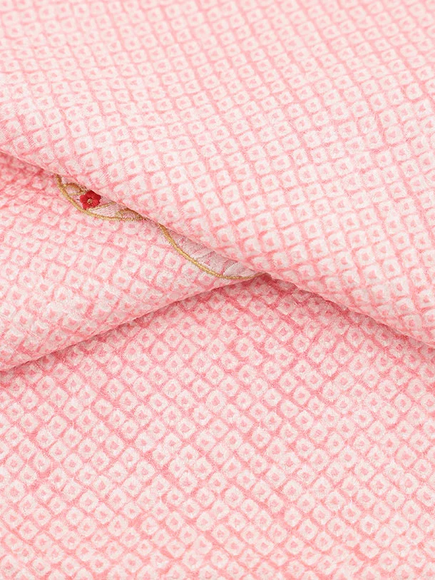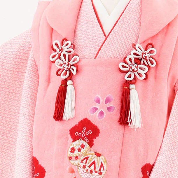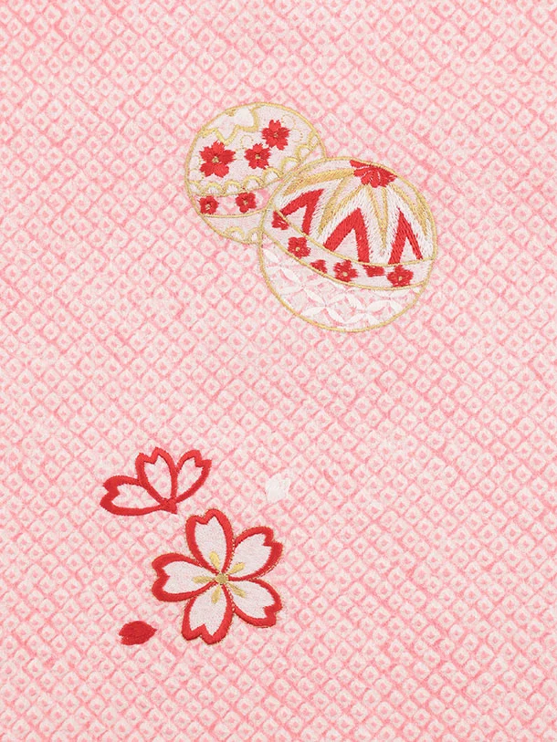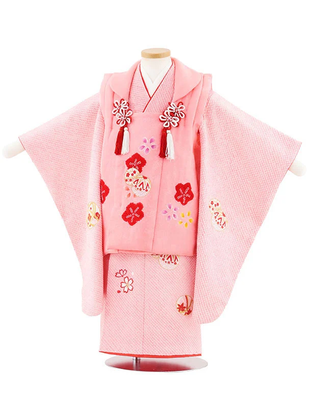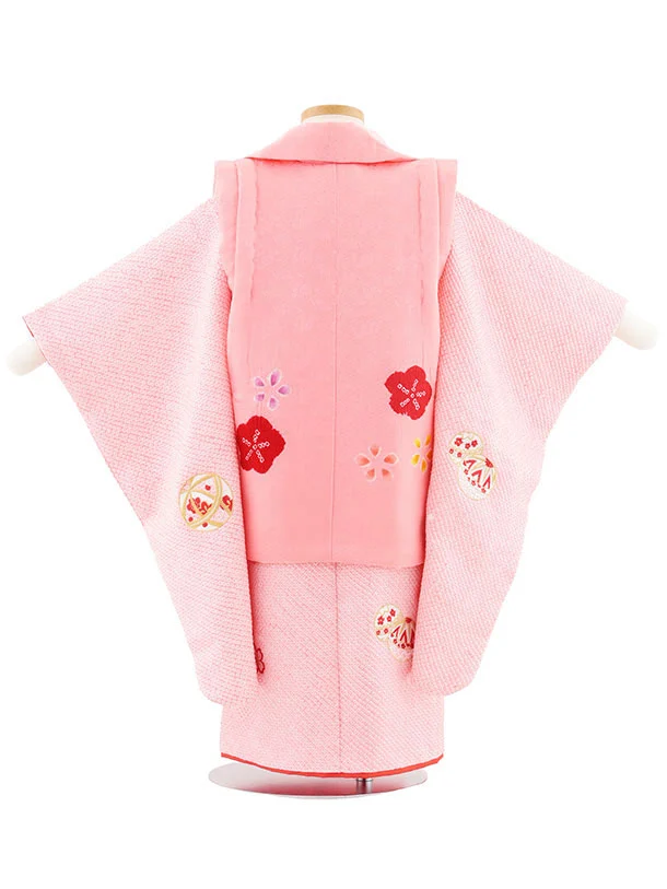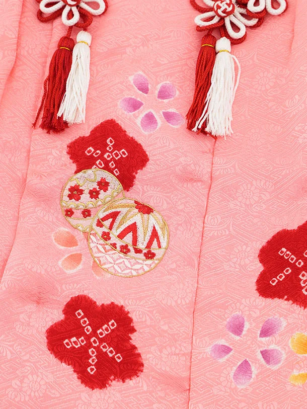 七五三(3歳女児被布)S124【正絹】ピンク刺繍赤まり×ピンク絞り刺繍まり
