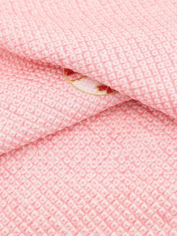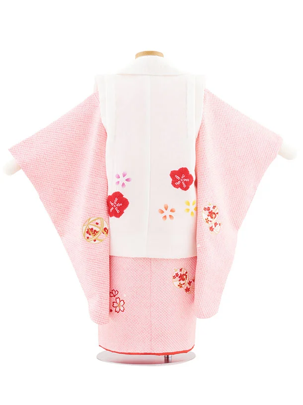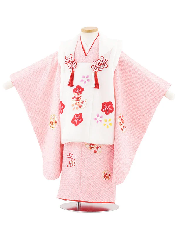 七五三レンタル(3歳女児被布)S127【正絹】白刺繍赤鈴×ピンク絞り刺繍鈴