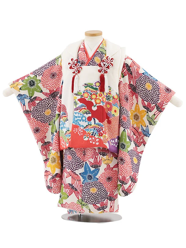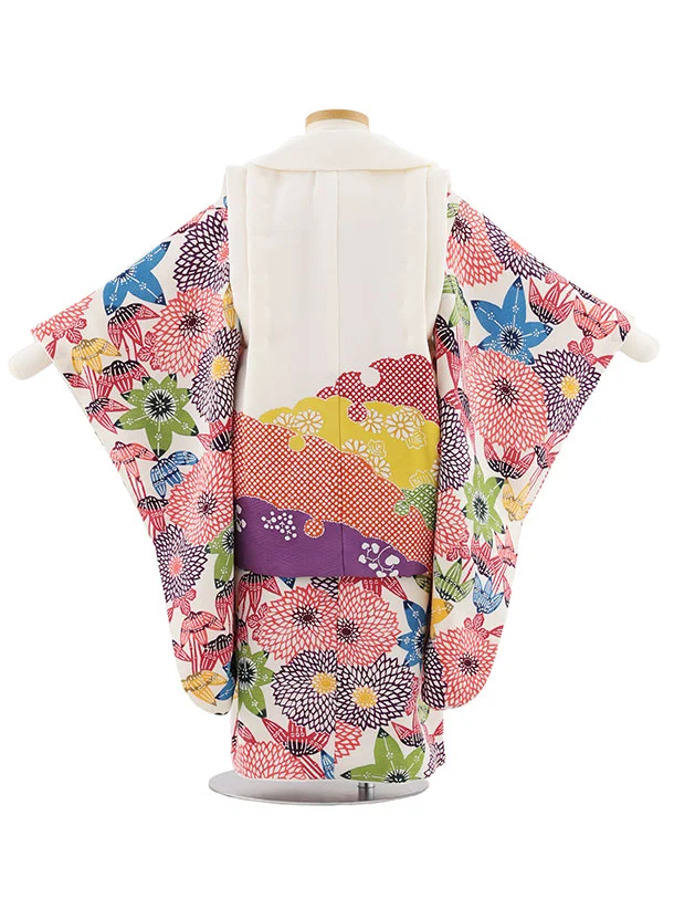 七五三(3歳女児)S132【高級正絹】栗山工房 和染紅型 白×笹と菊