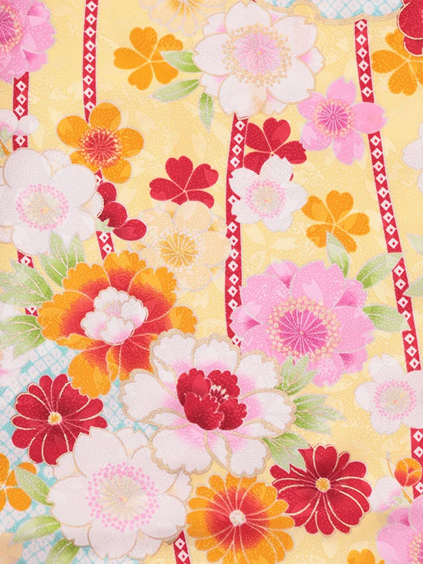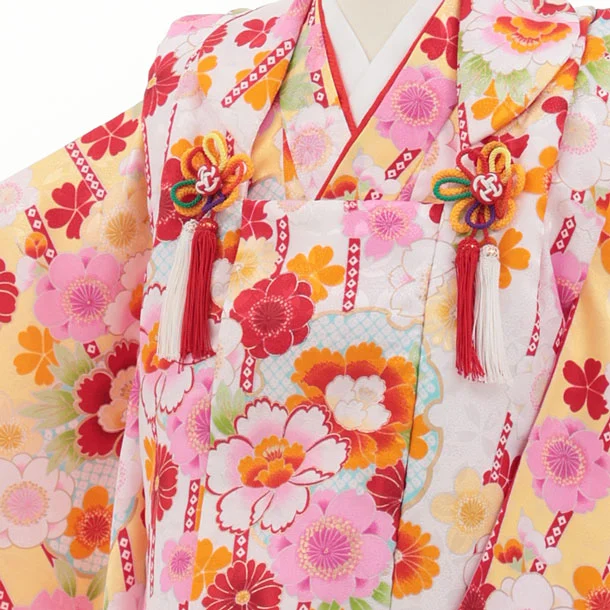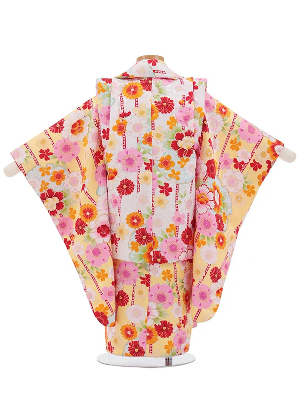 七五三レンタル(3歳女児被布)S134 白×黄 桜 牡丹 菊
