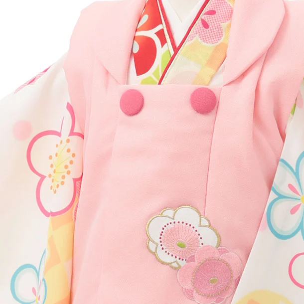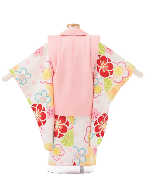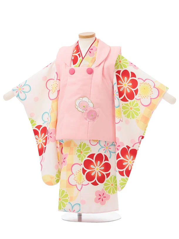 七五三レンタル(3歳女児被布)S135 ピンク刺繍 梅×白地 梅菊