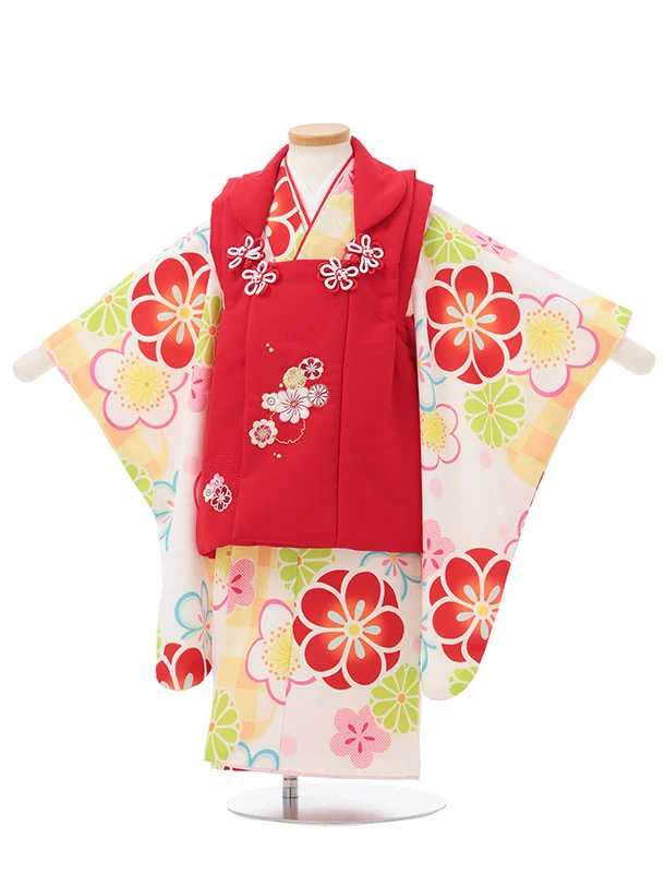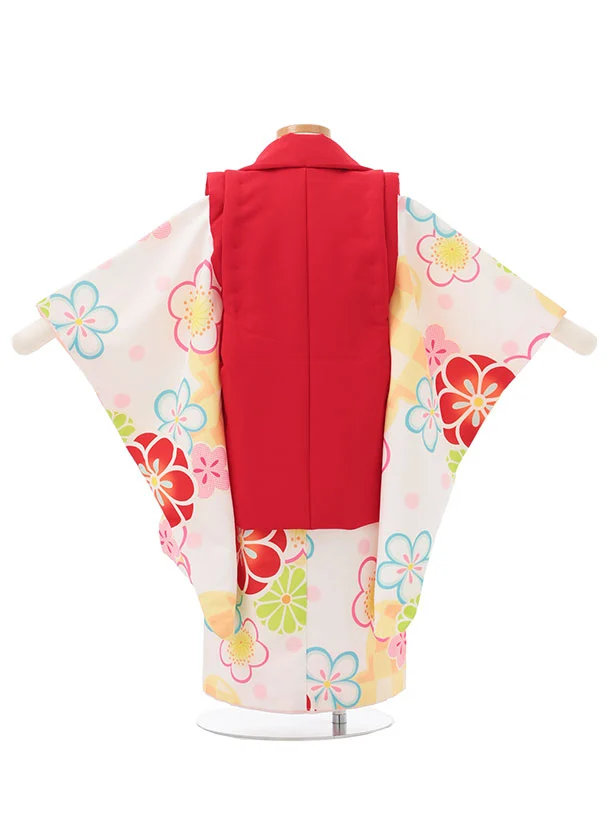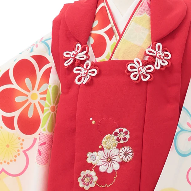 七五三レンタル(3歳女児被布)S136 赤 雪輪刺繍×白地 梅菊
