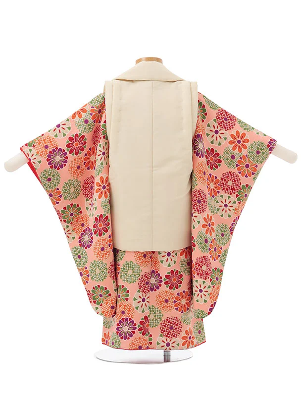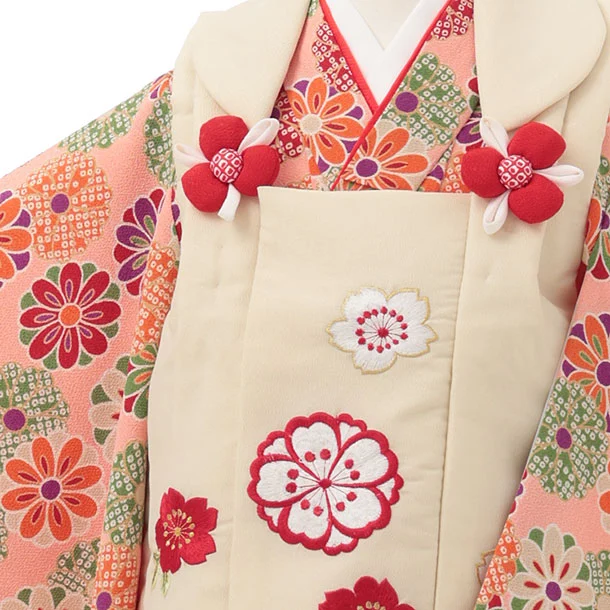 七五三レンタル(3歳女児被布)S138 クリーム刺繍桜×ピンクちりめん菊