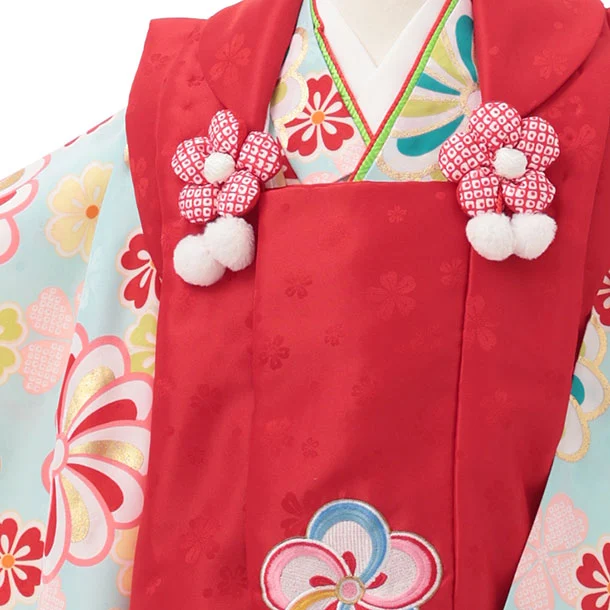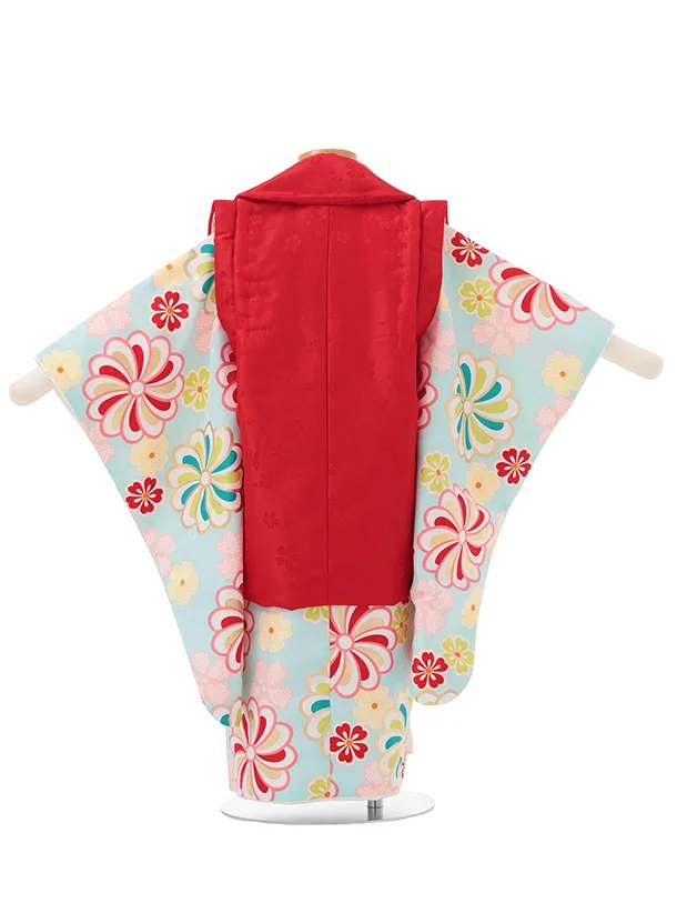 七五三レンタル(3歳女児被布)S139 赤×水色 ねじり梅