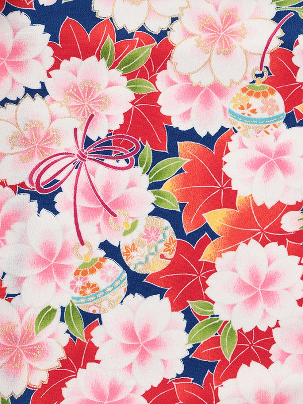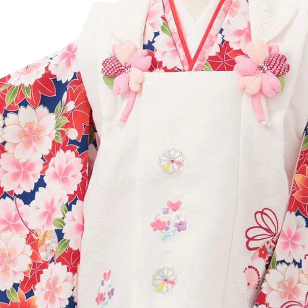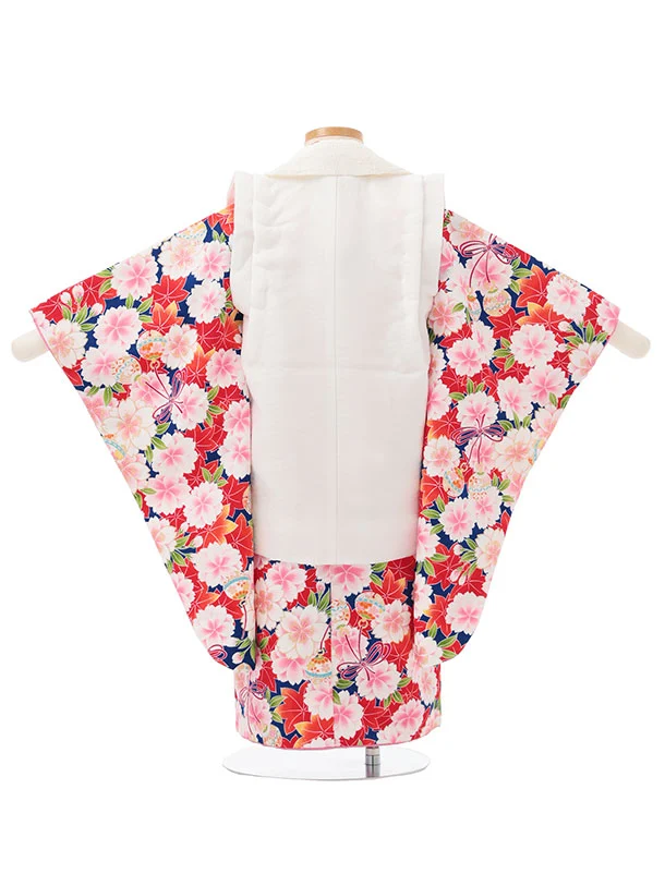 七五三レンタル(3歳女児被布)S140 白×青地 桜に鈴