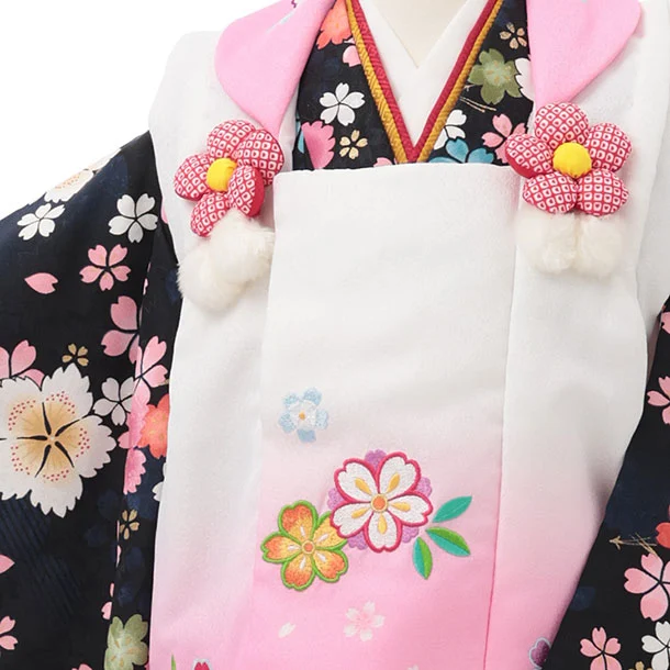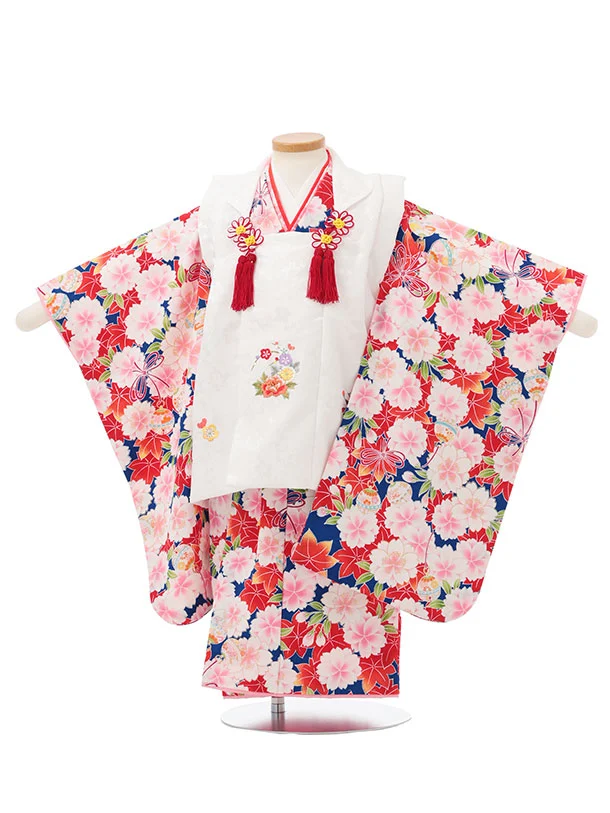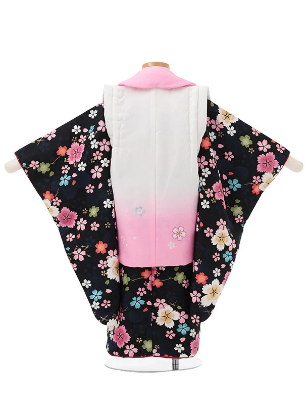 七五三レンタル(3歳女児被布)S142 白ぼかしピンク×紺地 桜