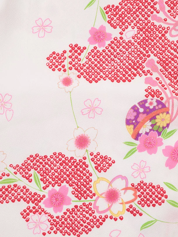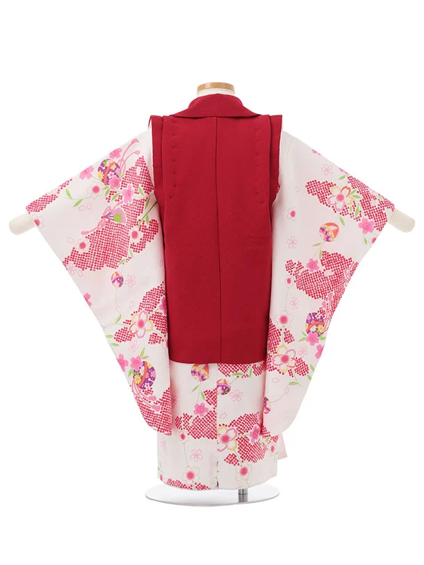 七五三レンタル(3歳女児被布)S143 赤 桜鈴刺繍×白地 桜鈴