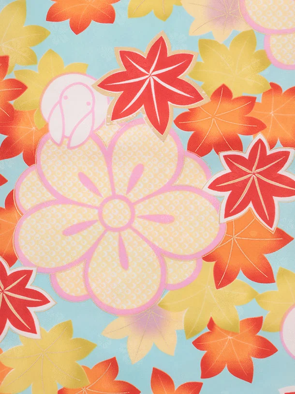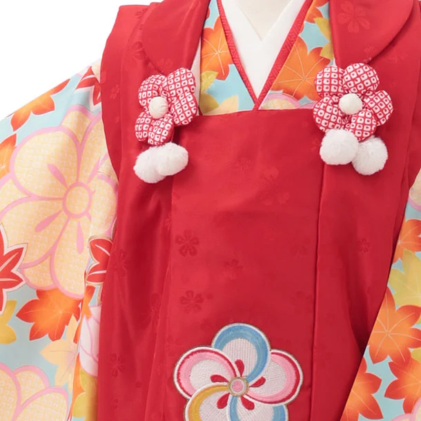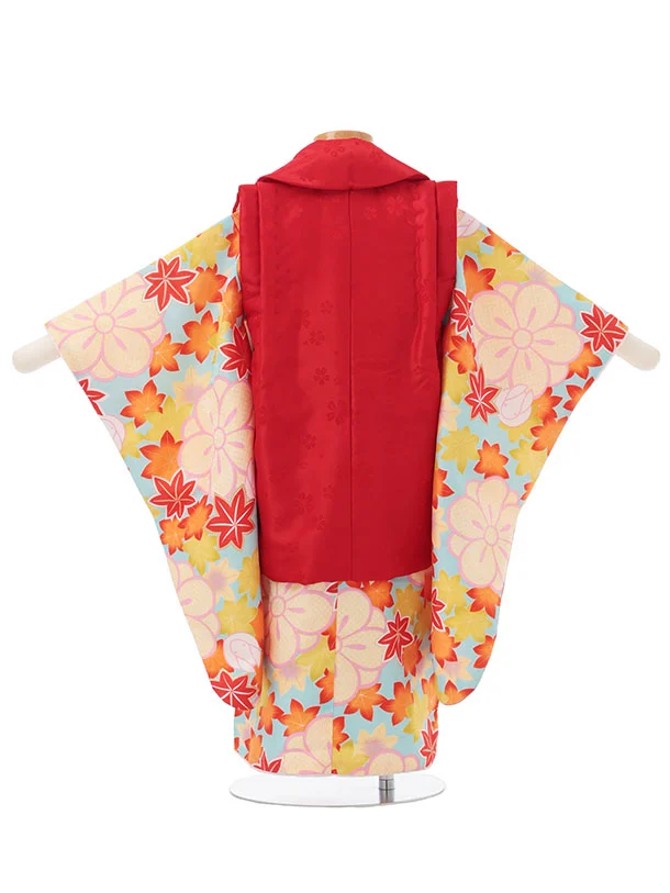 七五三レンタル(3歳女児被布)S148 赤×水色 紅葉