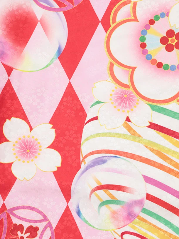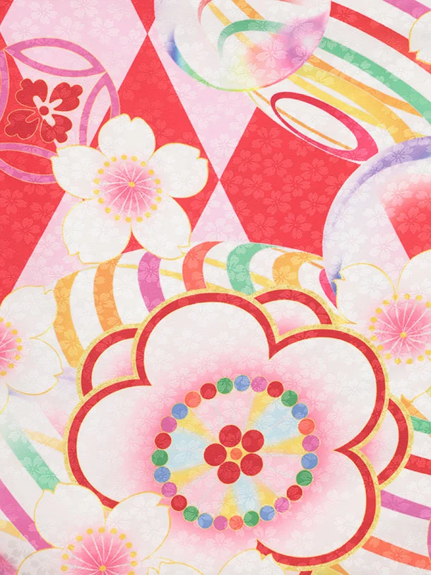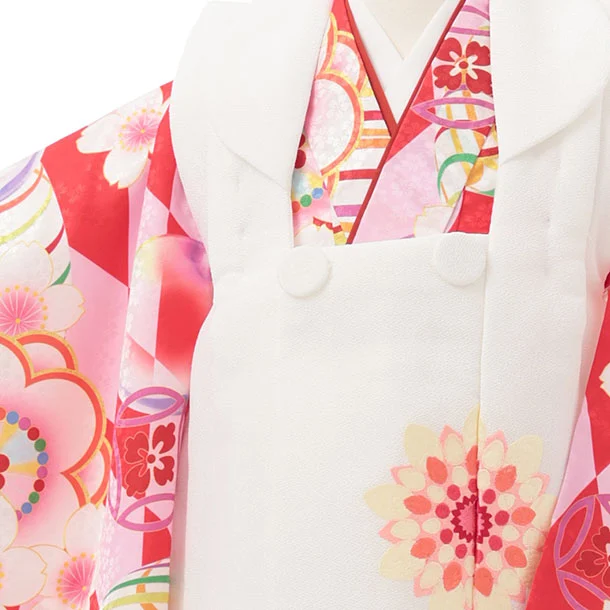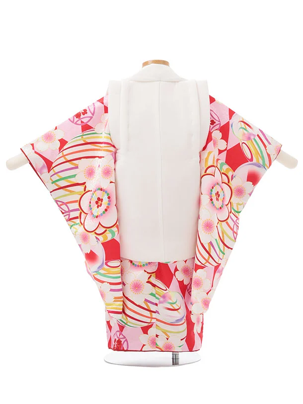 七五三レンタル(3歳女児被布)S152 白×赤ピンク 桜
