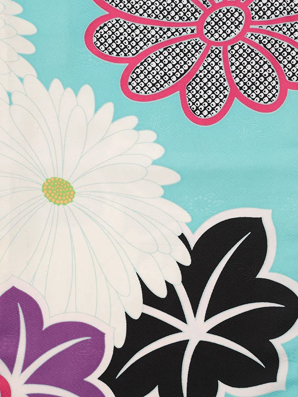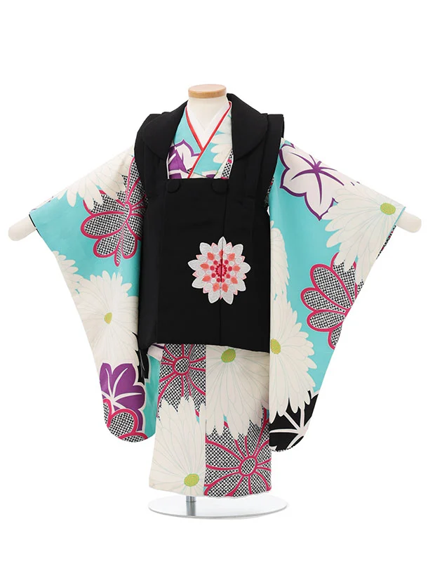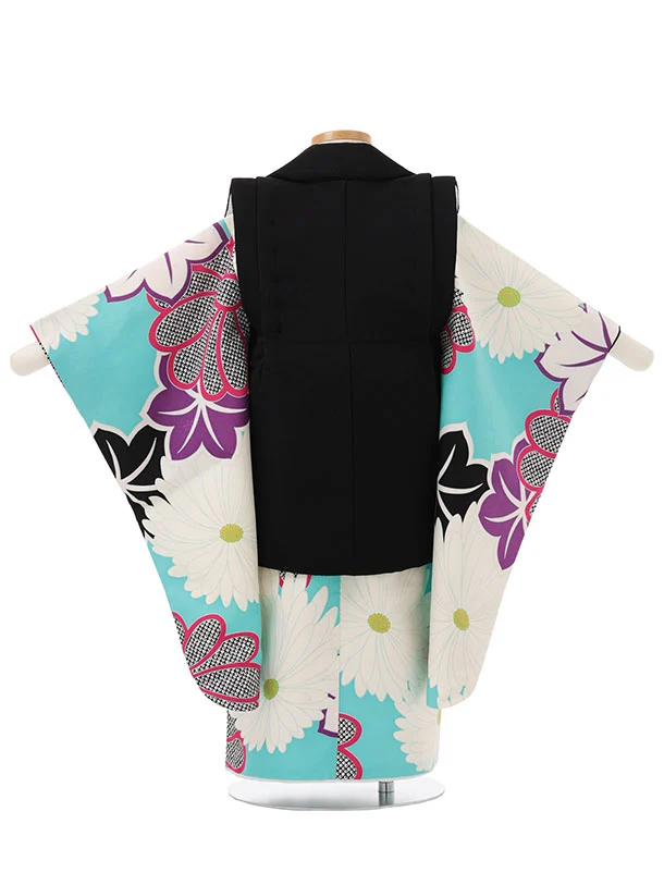 七五三レンタル(3歳女児被布)S157 黒×水色 菊