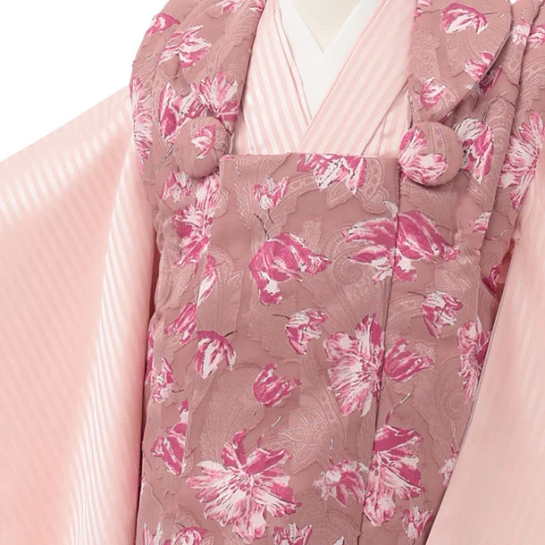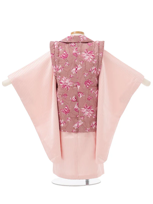 七五三レンタル(3歳女児被布)S163 くすみピンク 花×ピンクストライプ