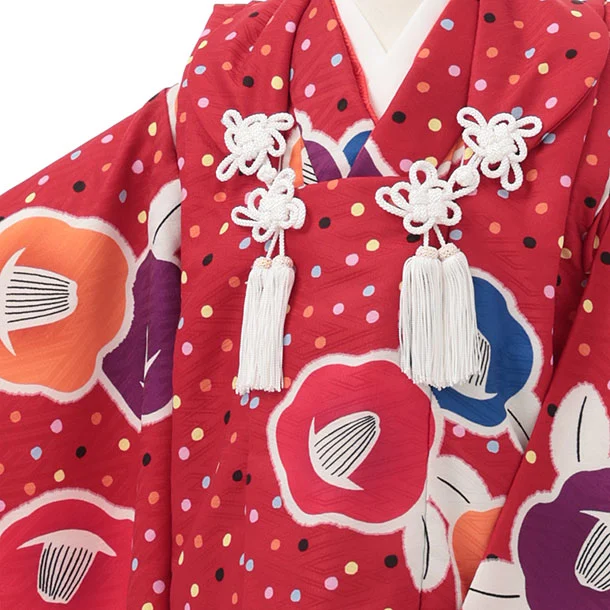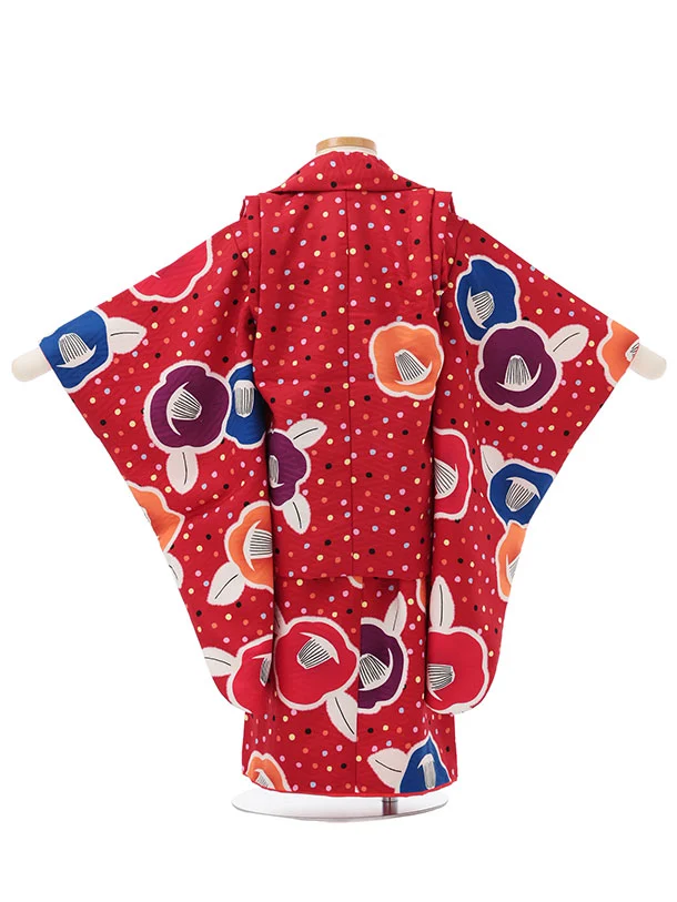 七五三レンタル(3歳女児被布)S169 赤ドット 椿