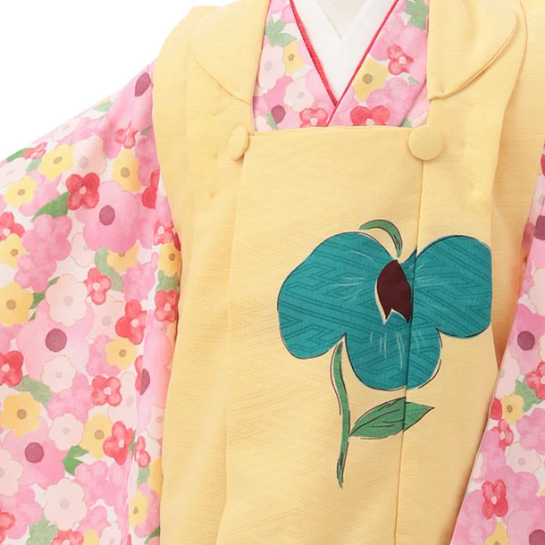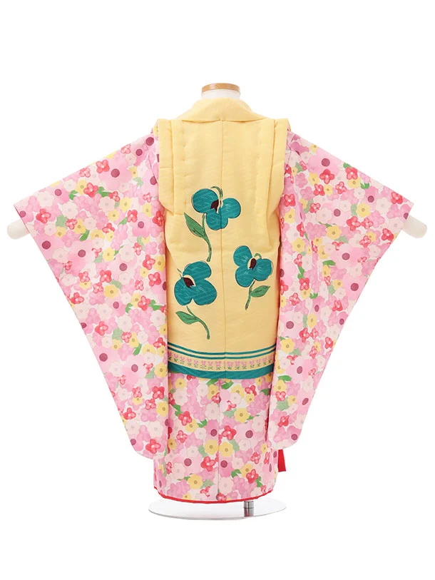 七五三レンタル(3歳女児被布)S170 うす黄色×白地 小花