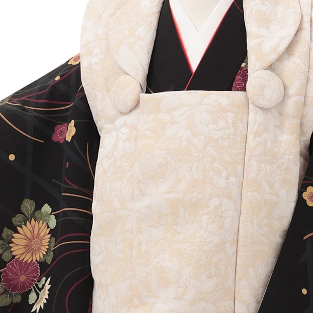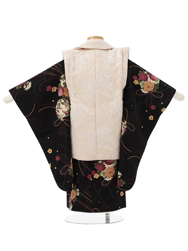 七五三レンタル(3歳女児被布)S173 ベージュ×黒地 菊 薬玉