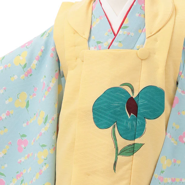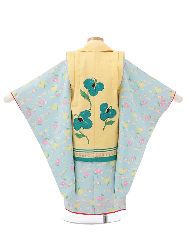 七五三レンタル(3歳女児被布)S174 うす黄色×水色 小花
