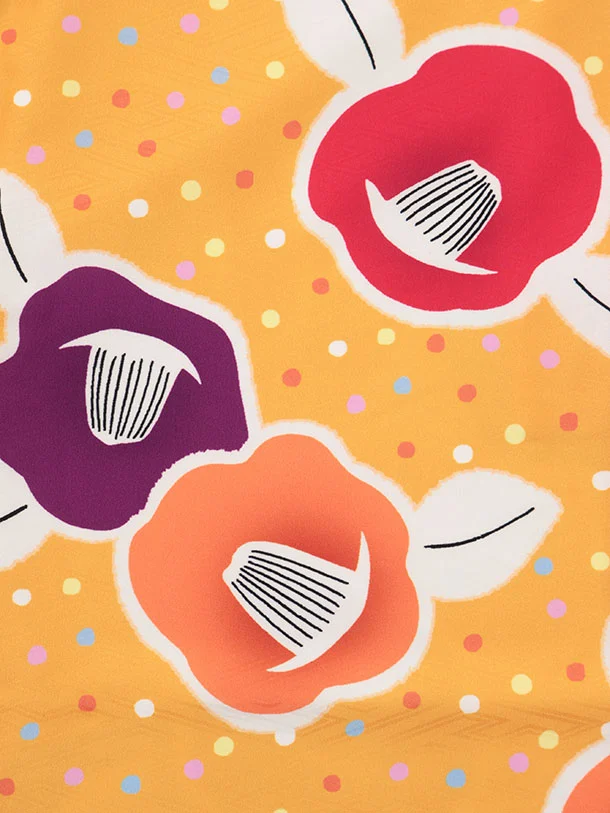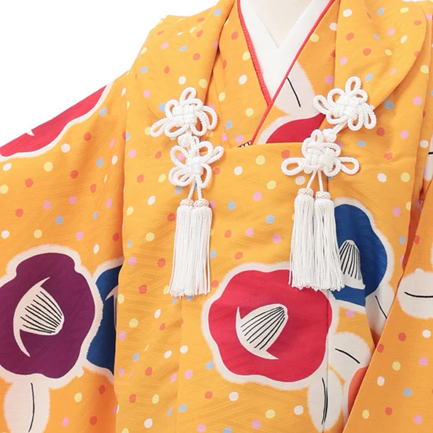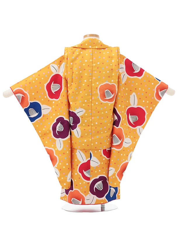 七五三レンタル(3歳女児被布)S178 やまぶき色 ドット 椿