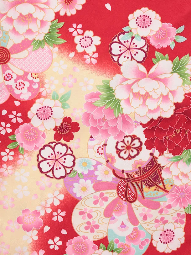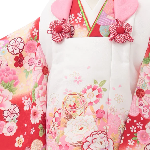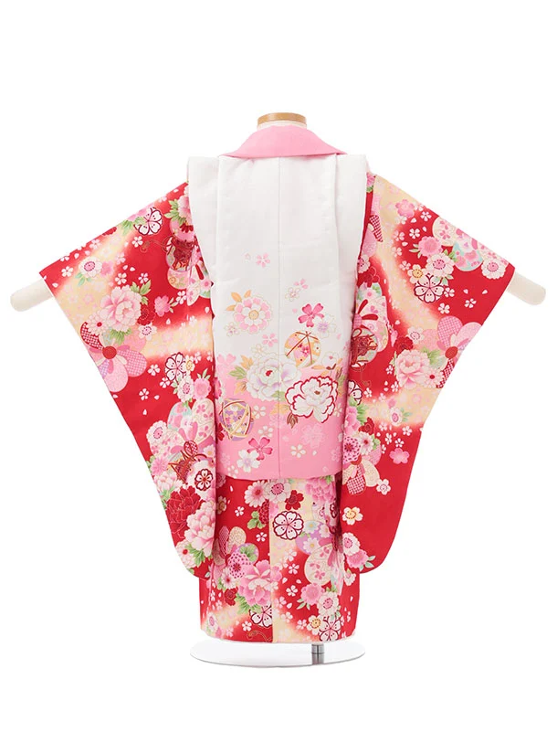 七五三レンタル(3歳女児被布)S182 白ぼかしピンク×赤地