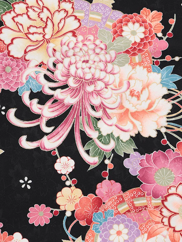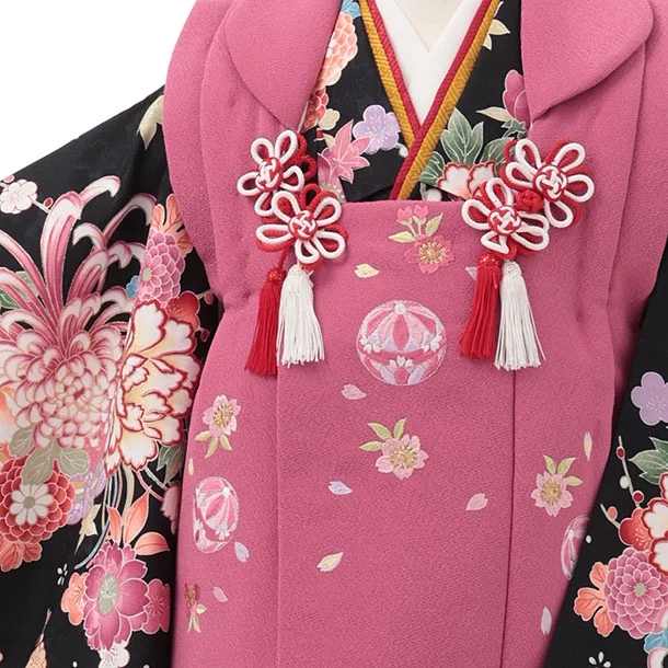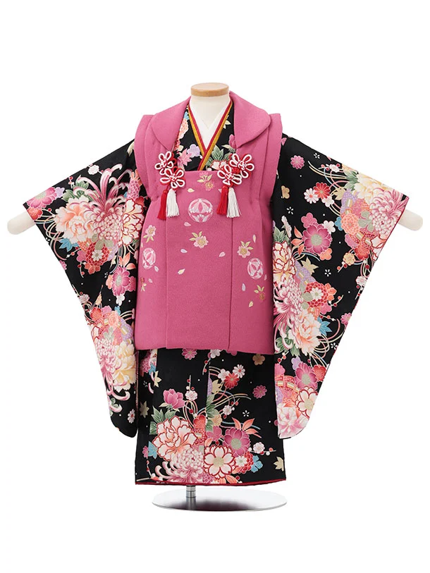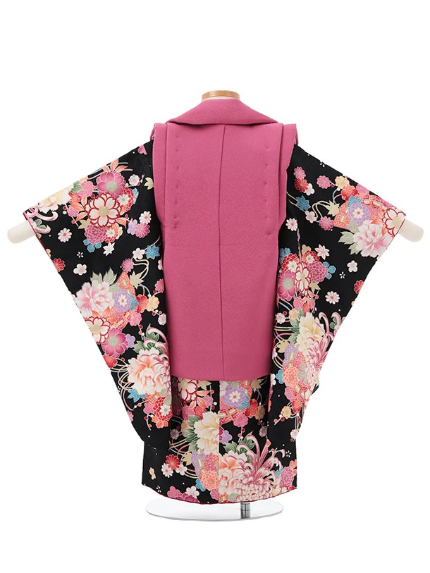 七五三レンタル(3歳女児被布)S184 ローズパープル×黒地 花扇
