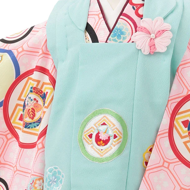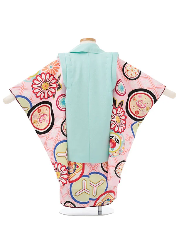 七五三レンタル(3歳女児被布)S186 水色×ピンク丸紋