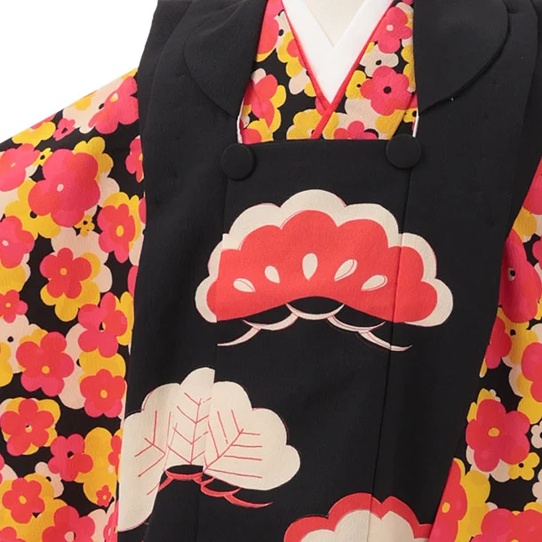 七五三レンタル(3歳女児被布)S188 黒×黒地 小花