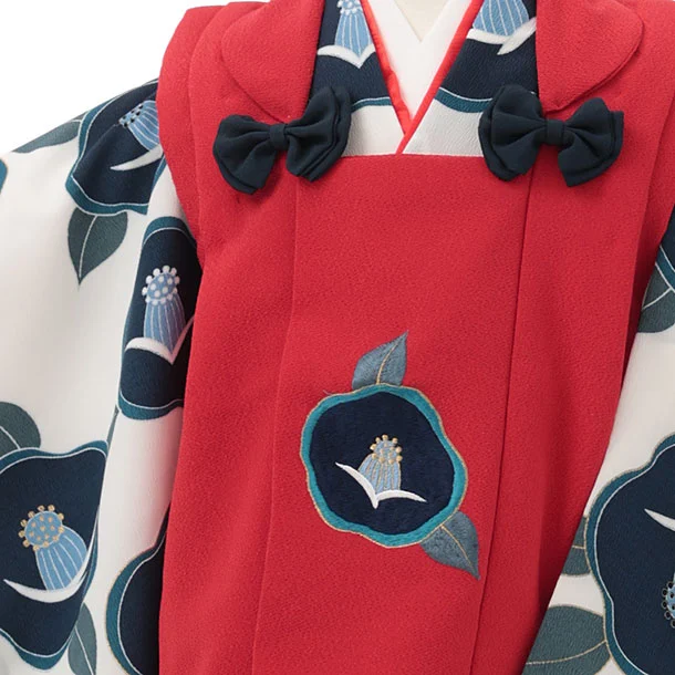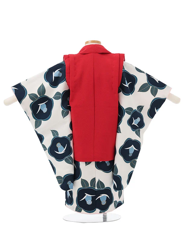 七五三レンタル(3歳女児被布)S193 赤刺繍 椿×白地 椿