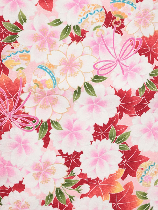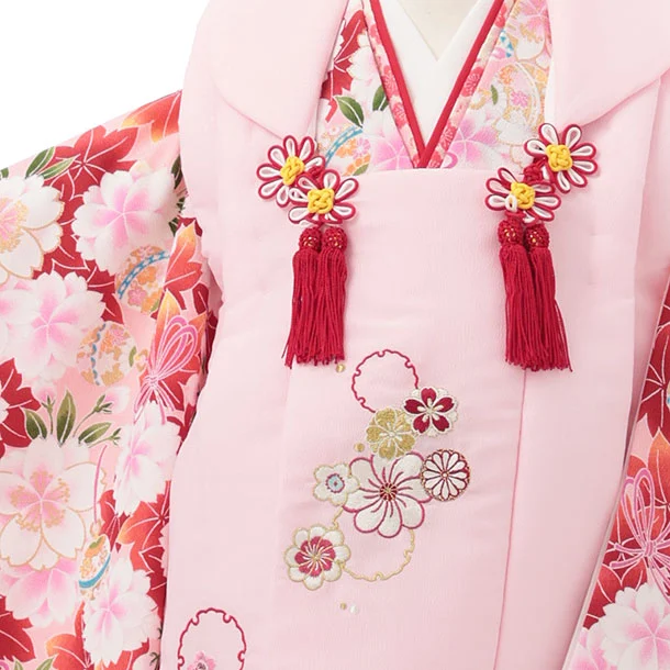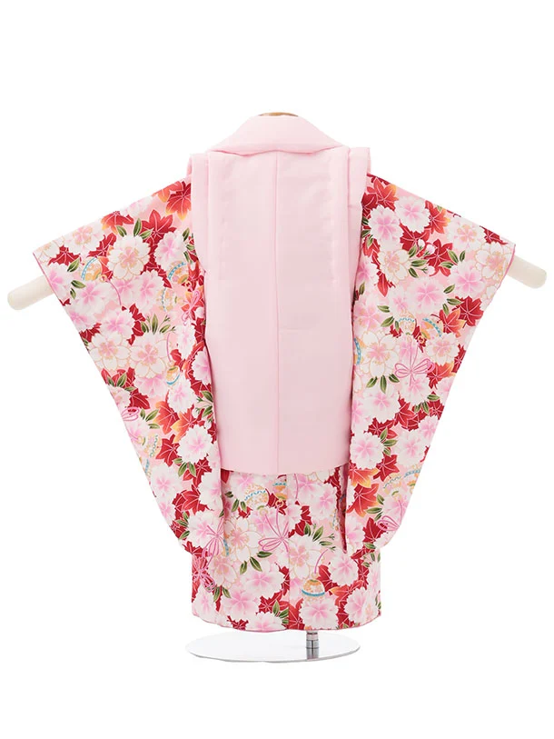 七五三レンタル(3歳女児被布)S194 ピンク 雪輪刺繍×ピンク 桜 鈴