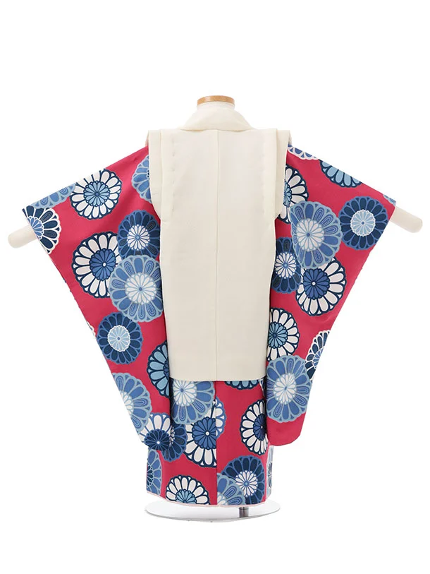 七五三レンタル(3歳女児被布)S197 オフホワイト×ボルドー 菊