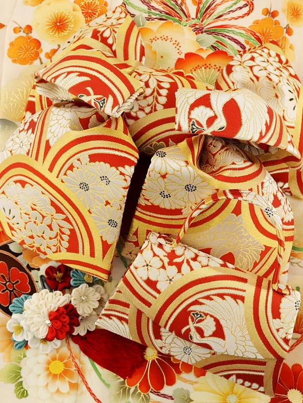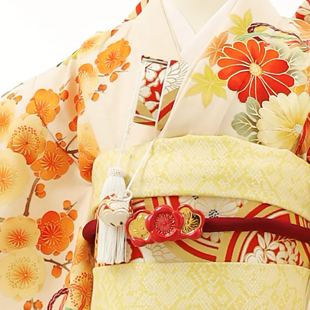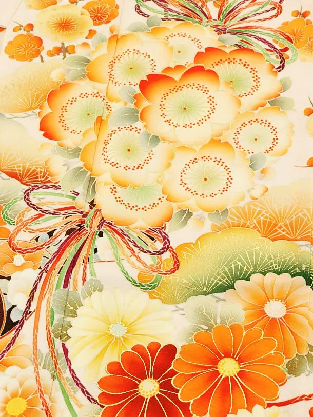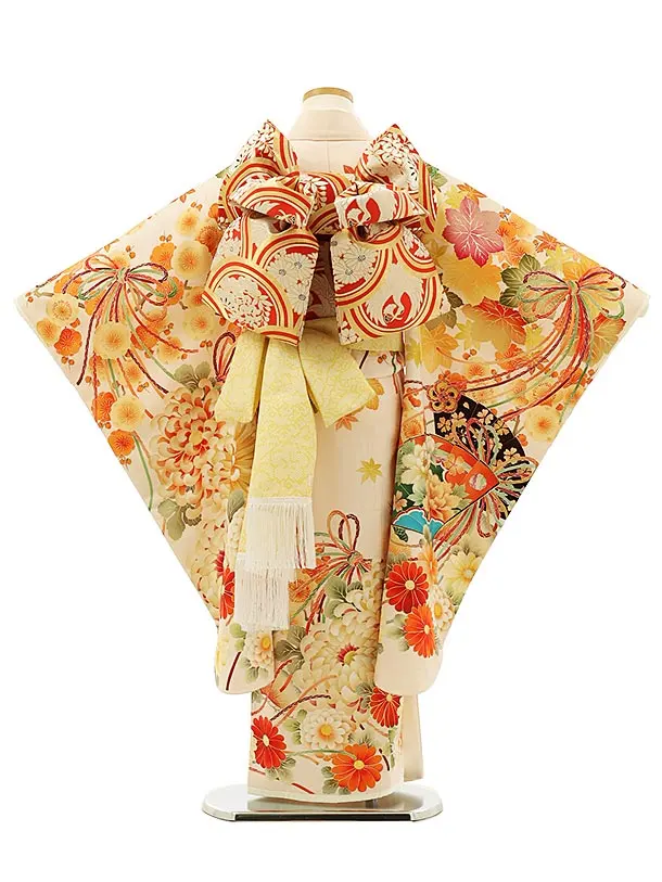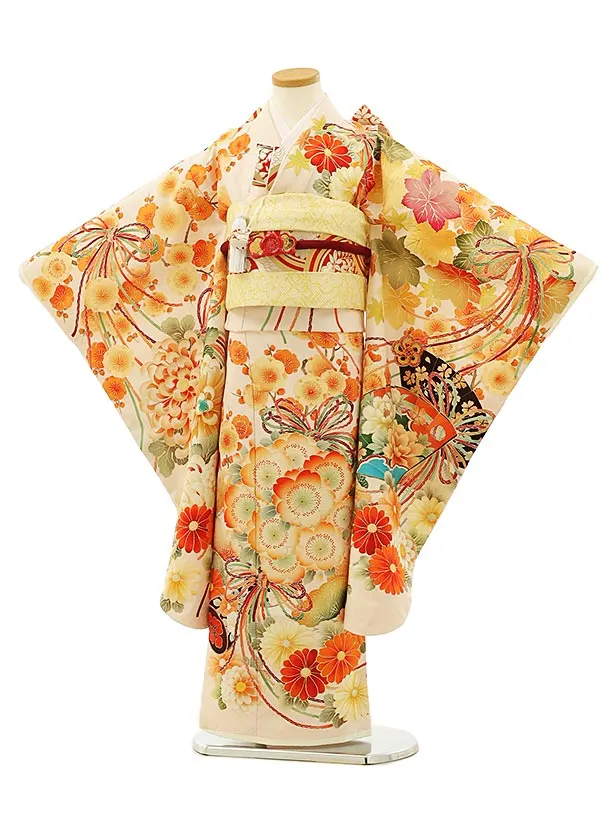 七五三(7歳結び帯)Y003 華徒然 クリーム 華薬玉に鼓