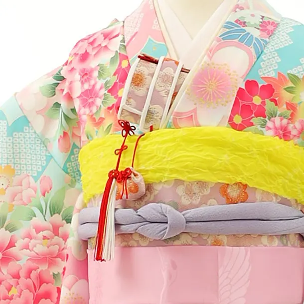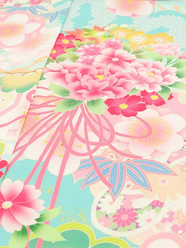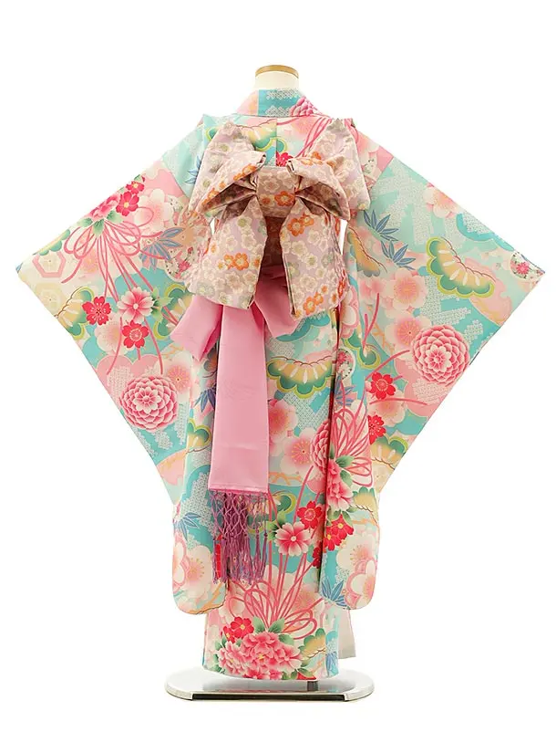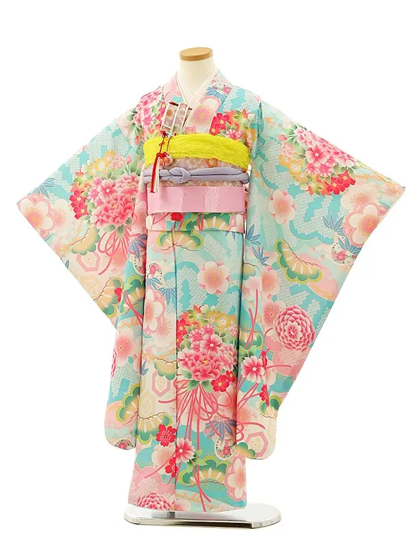 七五三レンタル(7歳結び帯)Y012 水色 薬玉