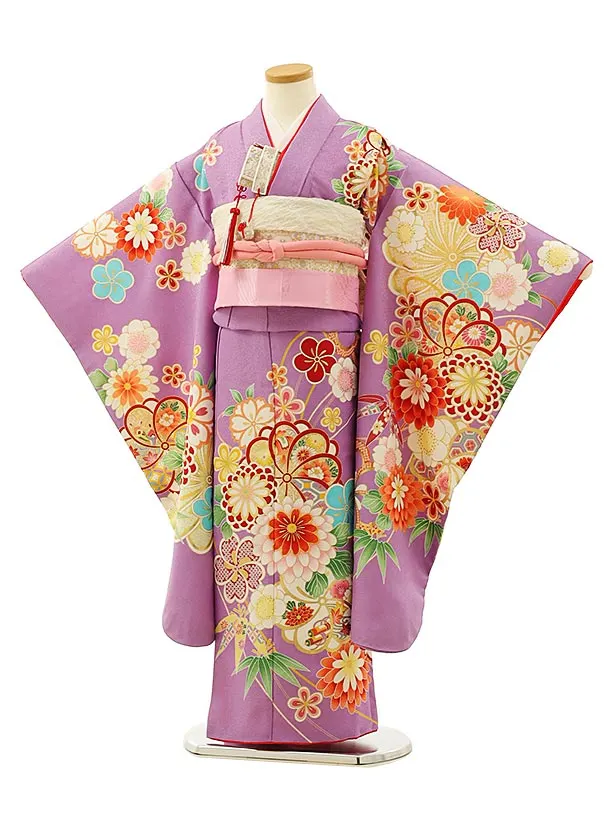 七五三レンタル(7歳結び帯)Y015 藤色 菊梅