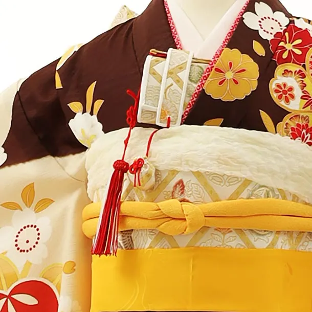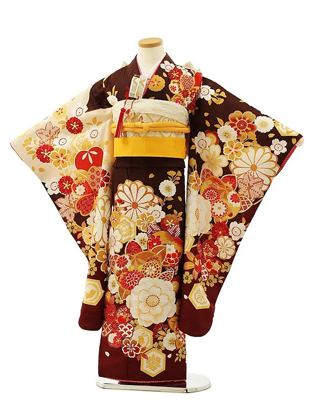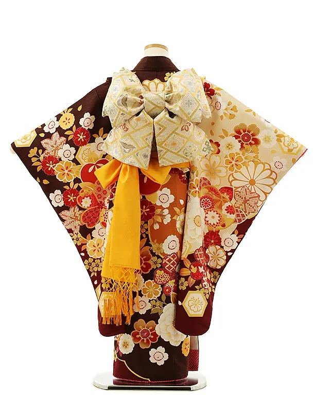 七五三レンタル(7歳結び帯)Y020 茶 ぼたん橘菊